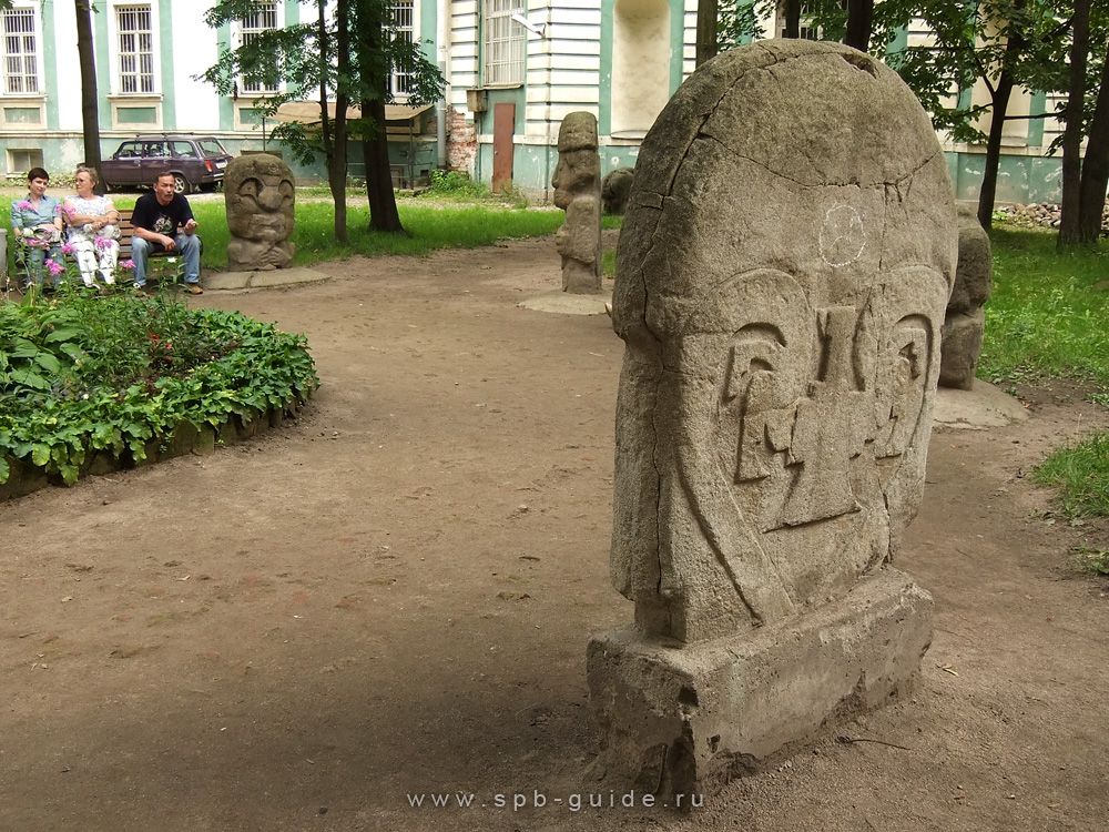 Попытка узнать их происхождение в то время окончилась неудачей. Мало того, никто и не знал о них, многие нам не верили, так как мы были фантазёры и дружки сочли наши рассказы за очередную байку. Прошли годы, появился Интернет , а с ним и возможность узнать об этих чопиках. Сначала я наткнулся на статью, где говорилось, что эти каменные скульптуры привезли в конце 19-го века из Центральной Америке. Якобы, одна из экспедиций нашла их в Колумбии и решила доставить в Россию, но во время шторма большинство идолов было потеряно и только несколько штук оказались в Петербурге. Меня смущало, что речь шла о каменных идолах, хотя я отчётливо помнил, что они были изготовлены из крошки. Как и оказалось, эта была легенда, не более того. Оригиналы находятся в Южной Америке в долине Сан-Августин, причём, их там много, несколько сотен. Были сделаны слепки некоторых скульптур, тех, что поменьше, так как существуют и высотой до несколько метров, а по ним в Германии в 1913 году были изготовлены копии, которые и привезли в Санкт-Петербург. Так как это были не оригиналы, то их поставили в сарай , где они и пролежали до 60-х годов, а потом их просто выставили во двор. Там-то мы их с другом и обнаружили. Сейчас двор открыт, можно свободно зайти и посмотреть на этих истуканов. Но помните, что при них нельзя врать своему собеседнику, иначе последует наказание. Говорят, что этим пользуются наиболее смышлёные девушки, которые приводят сюда своих дружков, чтобы именно здесь услышать от них признание в любви. Естественно, что миф о каре за враньё обязательно присутствует во время этого события.