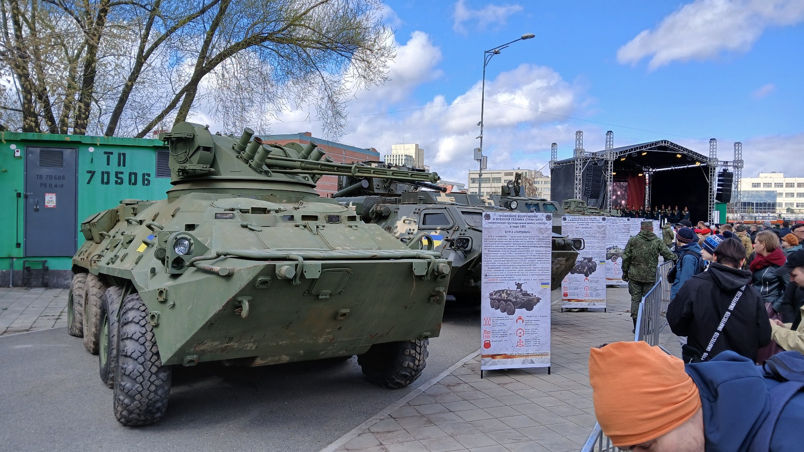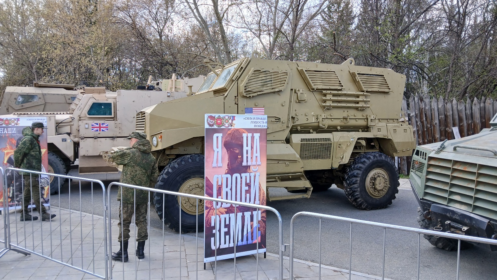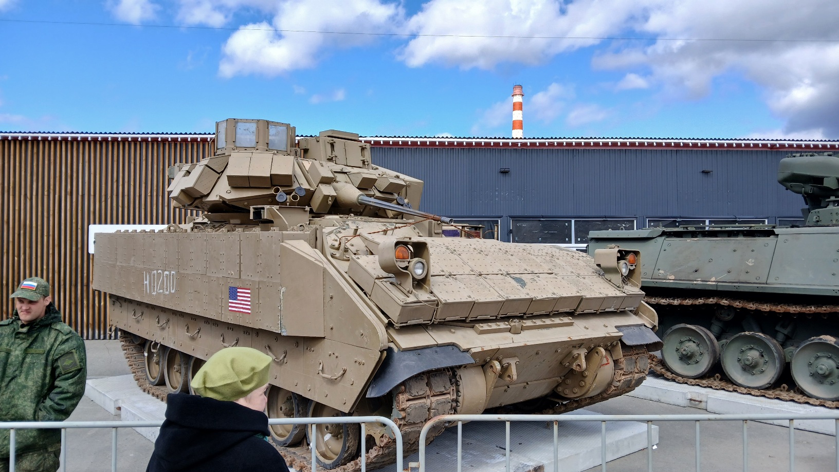 Отчасти прошлогодние экспонаты предоставленные различными трудящимися из разных стран. Плохо, что наши трофейные команды привели всё в более менее удобоваримый вид, в сожженном и ржавом исполнении было бы аутентичней. Хотя и так понятно, если у броневика вместо переднего моста клетка из арматуры и ЗиЛовские колёса. Особый интерес представляют инженерные машины типа Геркулеса, аналогичный давеча на учениях в Литве в болоте утонул. Ну и МаксПро конечно удивляет. Размером с железный гараж, даже если глаза закроешь, всё равно попадёшь. В павильоны-палатки сунулся было, но быстро ушел. Много народу, особенно детей, брутальные мужики с пивным пузом, наперевес с останками пулемётов фоткаются. Типа крутые. По мне, если крутой, записывайся в добровольцы и фоткайся с передовой хоть доть усёру. А так, не тобой добыто, не тебе и брать его в руки. Ну в общем как то так.