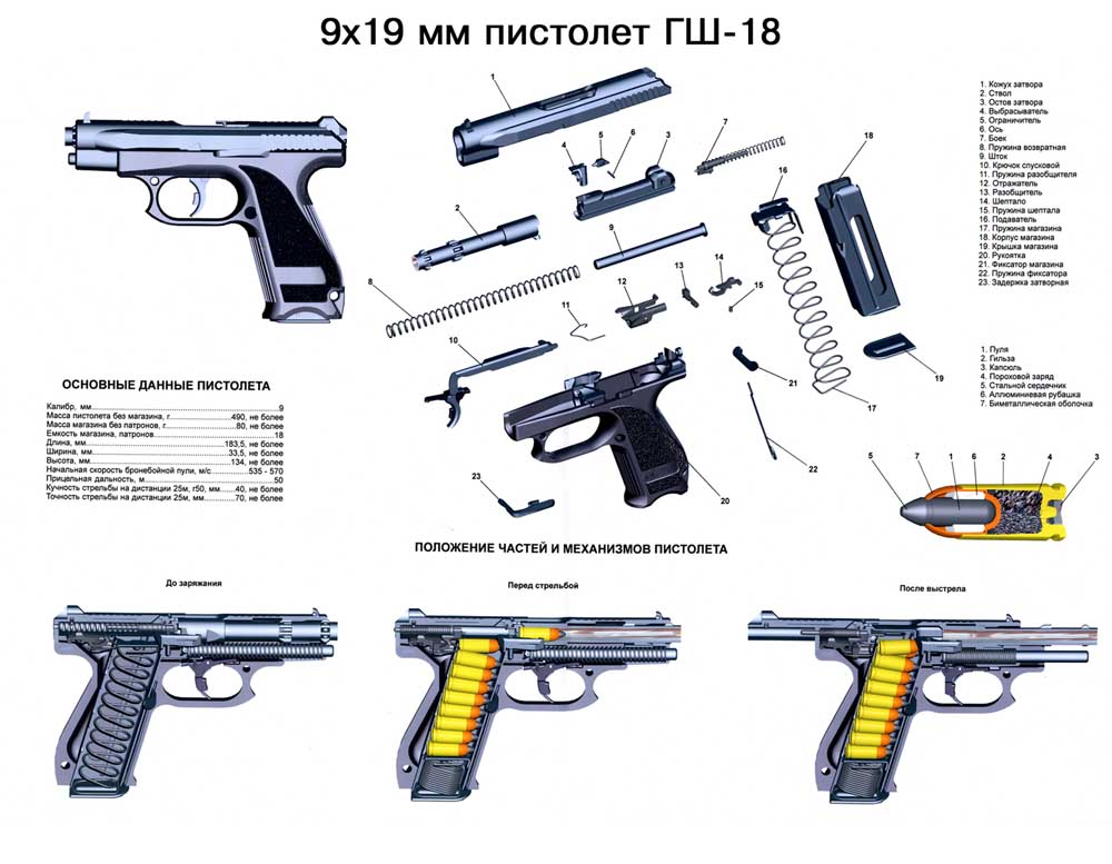Это да. Но зачем делать 10 боевых упоров, да еще достаточно сложной формы? Нетехнологично. Оружейникам то хорошо, поставил задачу технологу, а ему мозг ломай, как проточку этих 10 упоров разложить на операции на станке. В изготовлении такой пистолет будет дорогой. Да плюс еще дульный участок ствола "висит в воздухе", да спуск тугой... Mда... Вон у старенького Штейера примерно такая же система запирания ствола, но реализована получше, несмотря на более мощный патрон. А, патрон, мы же забыли, что ГШ-18 это связка патрон+оружие. Вот тут да, патрон под этот пистолет идет недешевый и убойный