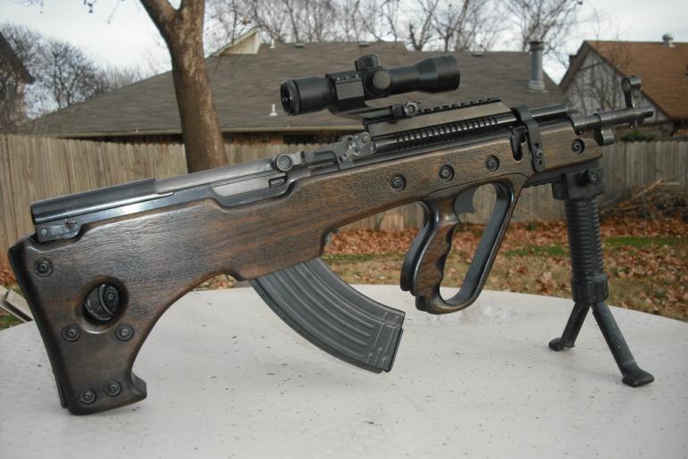 С целью уменьшения длины оружия снайперская винтовка ТКБ-0145К выполнена по схеме «буллпап».