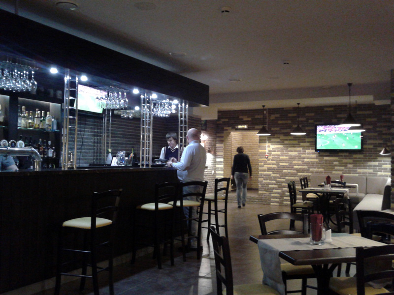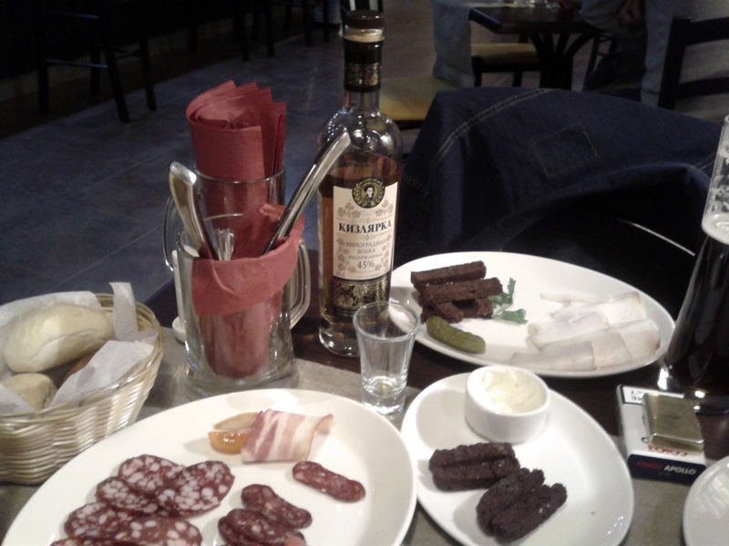 , а потом уже заказали все остальное - колбаски жареные, нарезки-сало-беконы. Когда закончилась наша "Кизлярка", взяли местную вишневую наливку. Вполне ничего себе, крепость около 35 градусов. В общем, впечатления неплохие, надо будет их закрепить. По стоимости подороже Риала, но вдвоем мы на 4500 посидели.