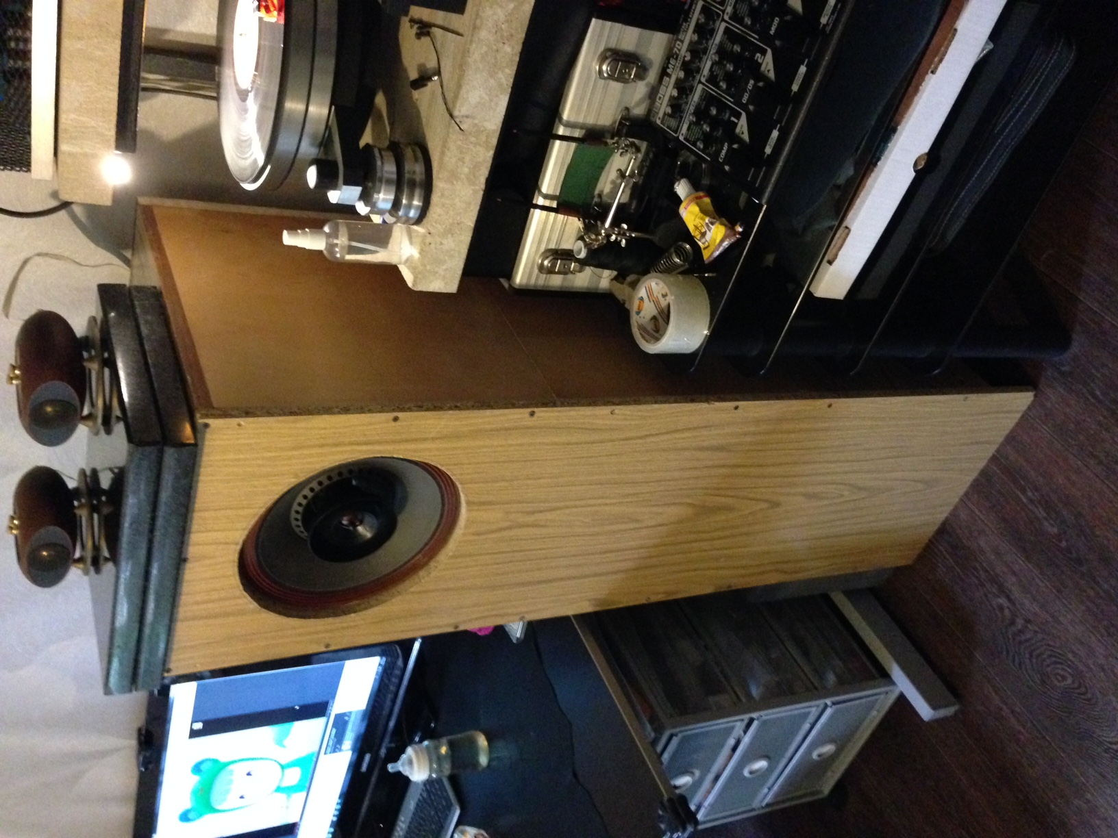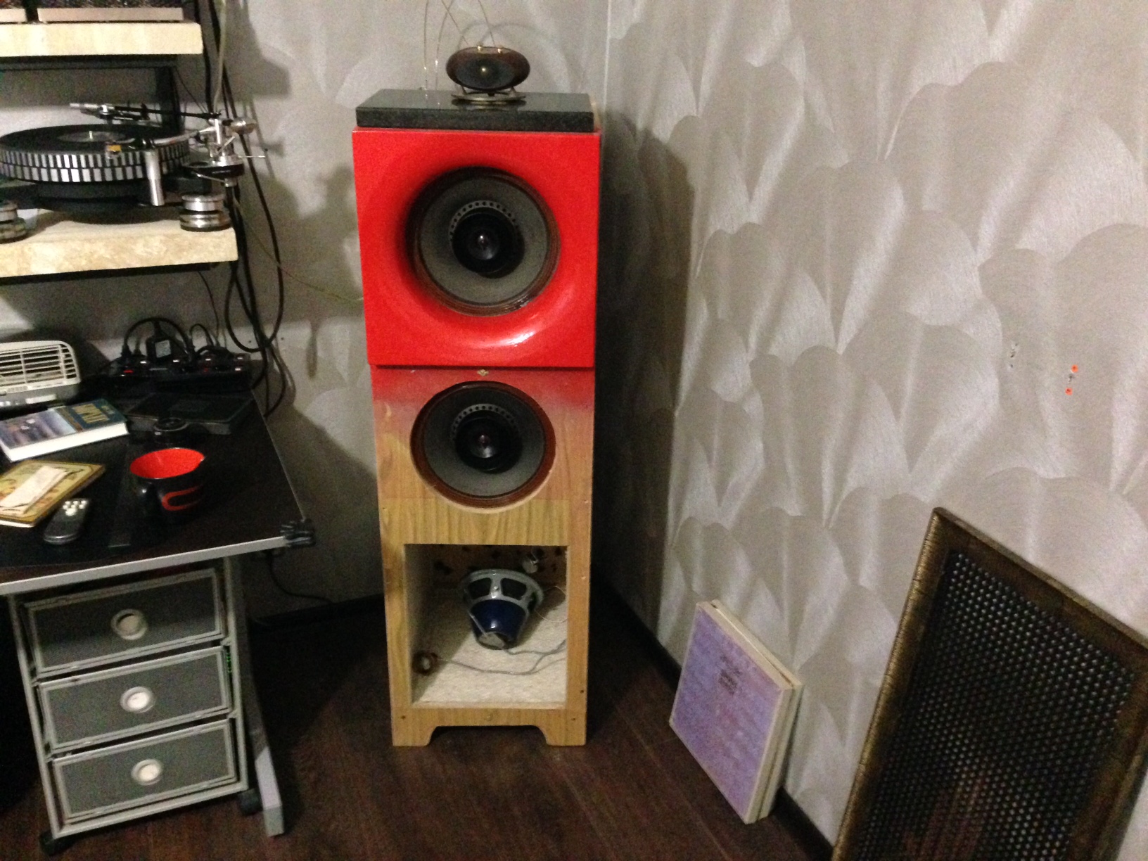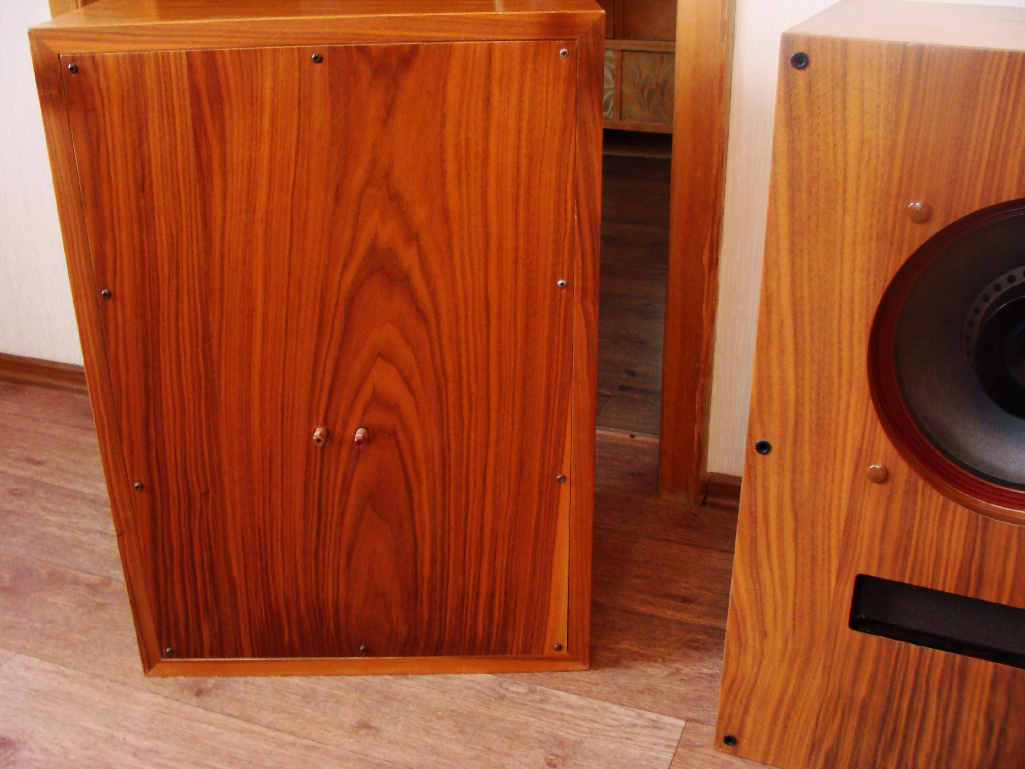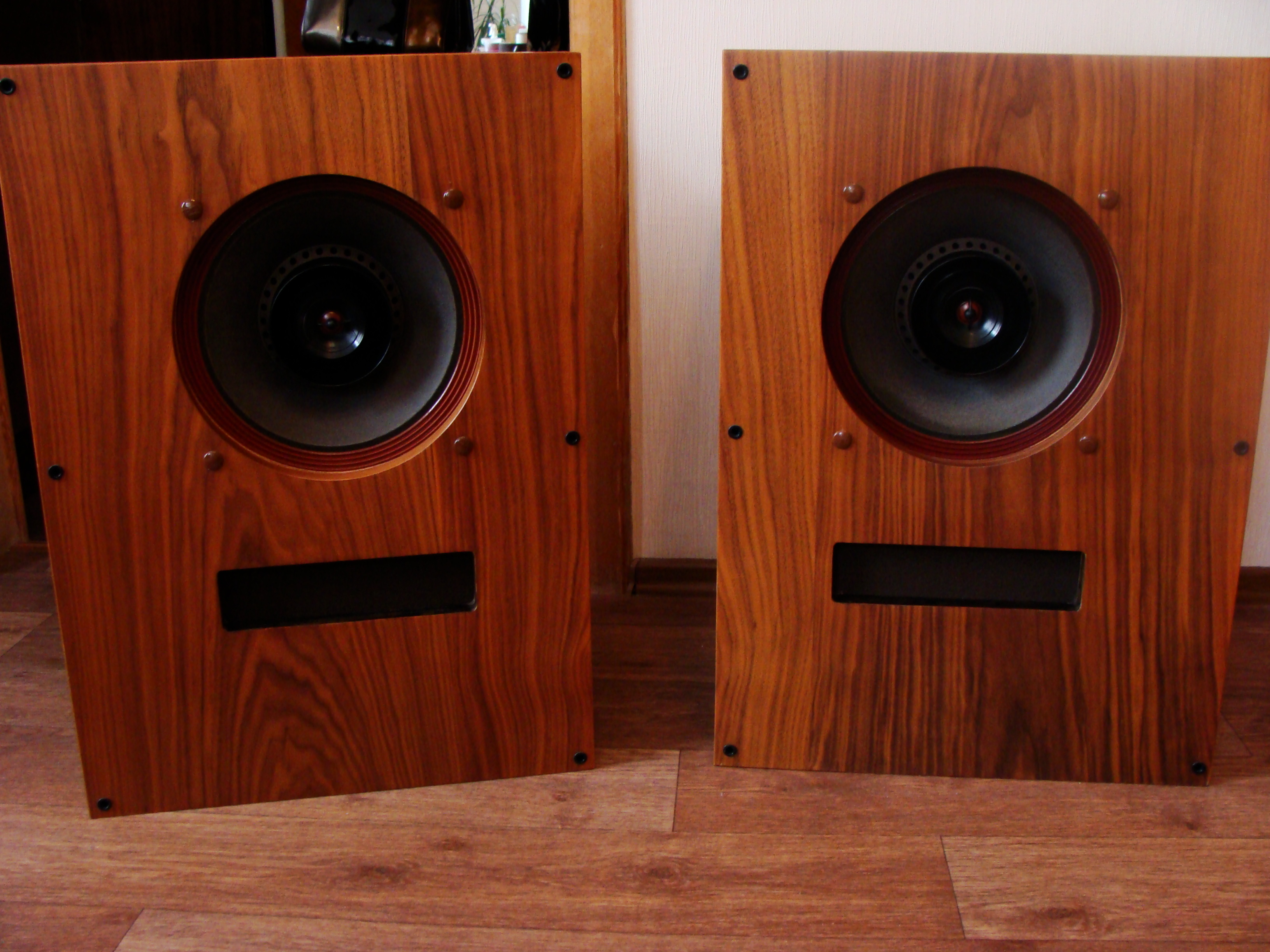 В общем, стояли у меня пара хороших таких напольника - Акустик Энерджи. Звук у них отличный был, полновесный и динамичный. Короче нормальный современный звук на вкус нормального современного человека. Года 3 назад, один добрый человек из Казани дал на вечер послушать эти самые University 312 и сообщил, что даже вставлять их в корпус необязательно, якобы, они и без корпуса могут звучать нормально. Конечно я в это не поверил, поскольку вообще ничего не знал о винтажной акустике и впервые держал в руках двух тяжеленных монстров из США 50-х годов. Когда включил их дома, я чуть не упал от неожиданности. Не знаю в чем дело, был просто не готов к такому, видимо у них своеобразно отстроена АЧХ на вкус и менталитет американца середины прошлого века, к тому же бумага, тканевые подвесы, + хороший металл и пластик типа эбонита. Звук сильно отличается от звука современной акустики. Хотя это не надо объяснять людям на этом форуме. Эти динамики я вернул хозяину, но в течении месяца выбрал и притащил из штатов первую пару точно таких же, попутно изучив все брошюры и каталоги этой фирмы. Именно 312 модель в круглом исполнении твиттера и произведенные на фабрике в Нью-Йорке, а не в Оклахоме, звучат лучше всего из среднего ценового диапазона. 16 ом, полоса от 40 до 40 000 герц! Было решено делать для них корпуса, но здесь и возникли проблемы. Эти динамики звучали всегда лучше без корпуса вообще, чем в ящиках. В корпусах у них добавлялся бубнящий бас, но пропадала яркость в середине и легкость подачи материала. Теперь меня будут бить профессионалы, но я расскажу что я с ними делал. Изначально были изготовлены экспериментальные ящики, примерно по золотому сечению, объемом 220 литров. Фанера 18. Играли около месяца, но не то. Средние кричат, бас бубнит, ненатурально звучало. Потом были задемпфированы ватином внутренние стенки ящика. Стало все еще хуже. Потом вырезано отверстие в нижней части равное двум площадям диффузора. Стало лучше, но не то. После каждого изменения, акустика слушалась подолгу, что бы объективно оценить степень катастрофы. Исходных данных о динамиках было не достаточно, что бы решить к какому типу акустического оформления они тяготеют. Лет 50 назад эти динамики устанавливались в угловые шкафы с ответствуем в площадь диффузора к полу. Не знаю, как там все это у них звучало, поскольку потенциал динамиков стал раскрываться, когда вообще была убрана задняя стенка ящика. Именно так они у меня стояли долго, около года. Попутно динамики вставлялись в другие ящики меньших объемов, ломаной конфигурации без параллельных стенок, а так же маниакально изготавливались различные рупорные накладки, для определения их влияния на звук. Так же, динамики подвергались репарации: может найду фото, менялся конденсатор на 5 мкФ на современный аудиофильский и это было очень познавательно. Звук из винтажного превратился в довольно современный, стал намного яснее и детализация звуковой картинки резко увеличилась, это было очевидно и неоспоримо, при том, что отслушивали их так же 2 специалиста, работающих в области проектирования аудио. Несмотря на положительные изменения в звуке, винтажная магия этих динамиков была разрушена внесенными изменениями и единогласно было принято решение оставлять именно те, родные конденсаторы, придающие звучанию очаровательный старомодный характер. По