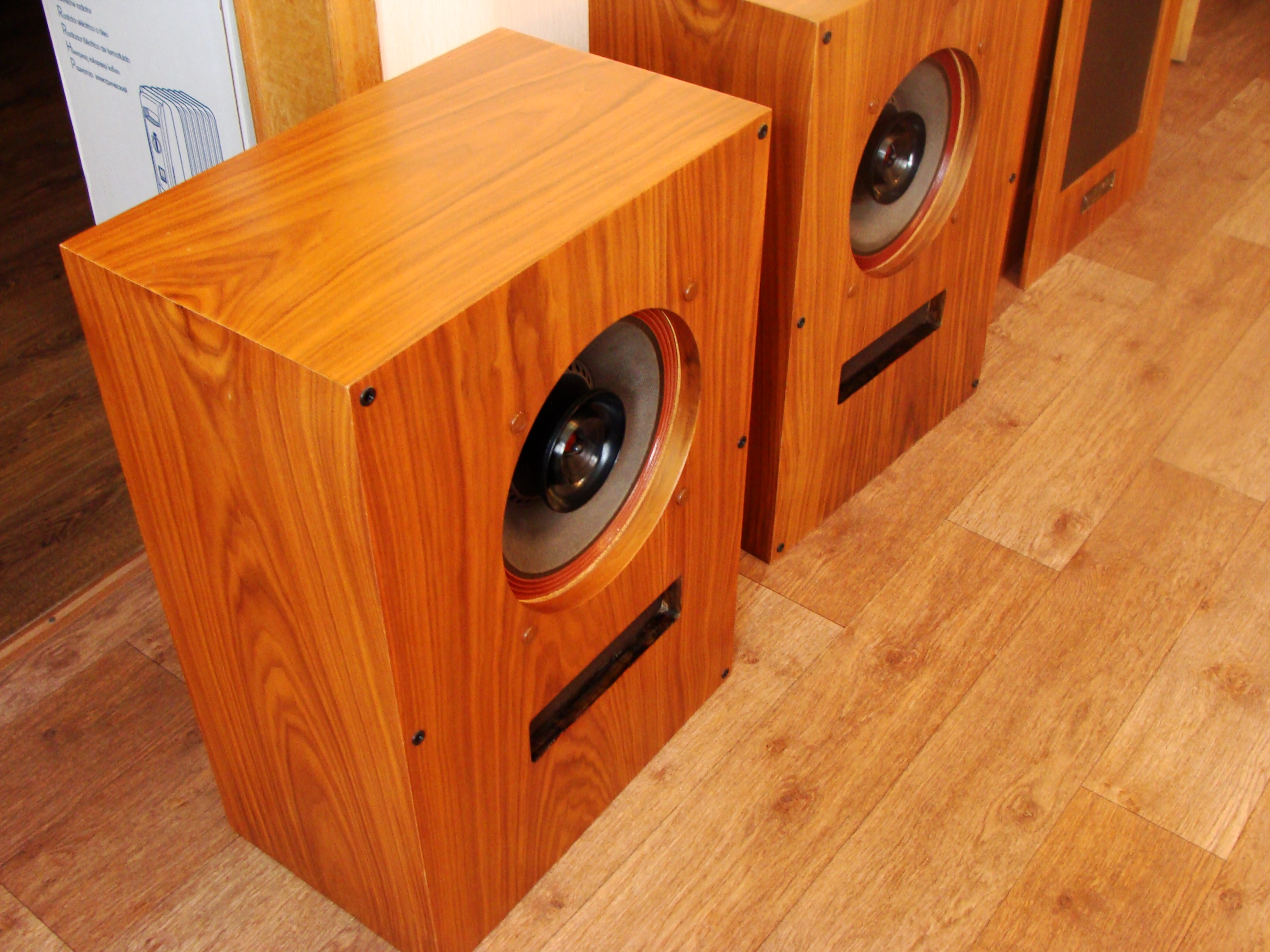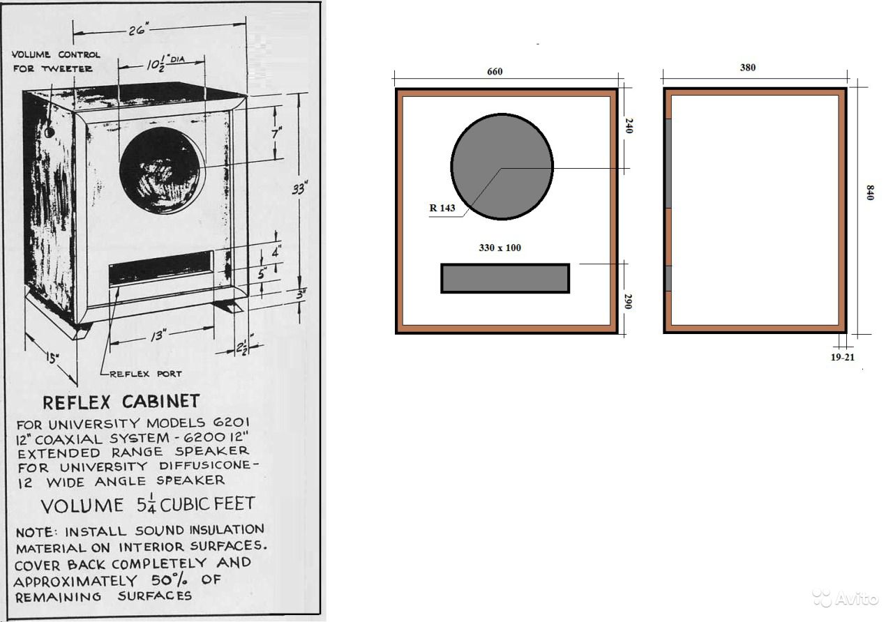 В общем, стояли у меня пара хороших таких напольника - Акустик Энерджи. Звук у них отличный был, полновесный и динамичный. Короче нормальный современный звук на вкус нормального современного человека. Года 3 назад, один добрый человек из Казани дал на вечер послушать эти самые University 312 и сообщил, что даже вставлять их в корпус необязательно, якобы, они и без корпуса могут звучать нормально. Конечно я в это не поверил, поскольку вообще ничего не знал о винтажной акустике и впервые держал в руках двух тяжеленных монстров из США 50-х годов. Когда включил их дома, я чуть не упал от неожиданности. Не знаю в чем дело, был просто не готов к такому, видимо у них своеобразно отстроена АЧХ на вкус и менталитет американца середины прошлого века, к тому же бумага, тканевые подвесы, + хороший металл и пластик типа эбонита. Звук сильно отличается от звука современной акустики. Хотя это не надо объяснять людям на этом форуме. Эти динамики я вернул хозяину, но в течении месяца выбрал и притащил из штатов первую пару точно таких же, попутно изучив все брошюры и каталоги этой фирмы. Именно 312 модель в круглом исполнении твиттера и произведенные на фабрике в Нью-Йорке, а не в Оклахоме, звучат лучше всего из среднего ценового диапазона. 16 ом, полоса от 40 до 40 000 герц! Было решено делать для них корпуса, но здесь и возникли проблемы. Эти динамики звучали всегда лучше без корпуса вообще, чем в ящиках. В корпусах у них добавлялся бубнящий бас, но пропадала яркость в середине и легкость подачи материала. Теперь меня будут бить профессионалы, но я расскажу что я с ними делал. Изначально были изготовлены экспериментальные ящики, примерно по золотому сечению, объемом 220 литров. Фанера 18. Играли около месяца, но не то. Средние кричат, бас бубнит, ненатурально звучало. Потом были задемпфированы ватином внутренние стенки ящика. Стало все еще хуже. Потом вырезано отверстие в нижней части равное двум площадям диффузора. Стало лучше, но не то. После каждого изменения, акустика слушалась подолгу, что бы объективно оценить степень катастрофы. Исходных данных о динамиках было не достаточно, что бы решить к какому типу акустического оформления они тяготеют. Лет 50 назад эти динамики устанавливались в угловые шкафы с ответствуем в площадь диффузора к полу. Не знаю, как там все это у них звучало, поскольку потенциал динамиков стал раскрываться, когда вообще была убрана задняя стенка ящика. Именно так они у меня стояли долго, около года. Попутно динамики вставлялись в другие ящики меньших объемов, ломаной конфигурации без параллельных стенок, а так же маниакально изготавливались различные рупорные накладки, для определения их влияния на звук. Так же, динамики подвергались репарации: может найду фото, менялся конденсатор на 5 мкФ на современный аудиофильский и это было очень познавательно. Звук из винтажного превратился в довольно современный, стал намного яснее и детализация звуковой картинки резко увеличилась, это было очевидно и неоспоримо, при том, что отслушивали их так же 2 специалиста, работающих в области проектирования аудио. Несмотря на положительные изменения в звуке, винтажная магия этих динамиков была разрушена внесенными изменениями и единогласно было принято решение оставлять именно те, родные конденсаторы, придающие звучанию очаровательный старомодный характер. По