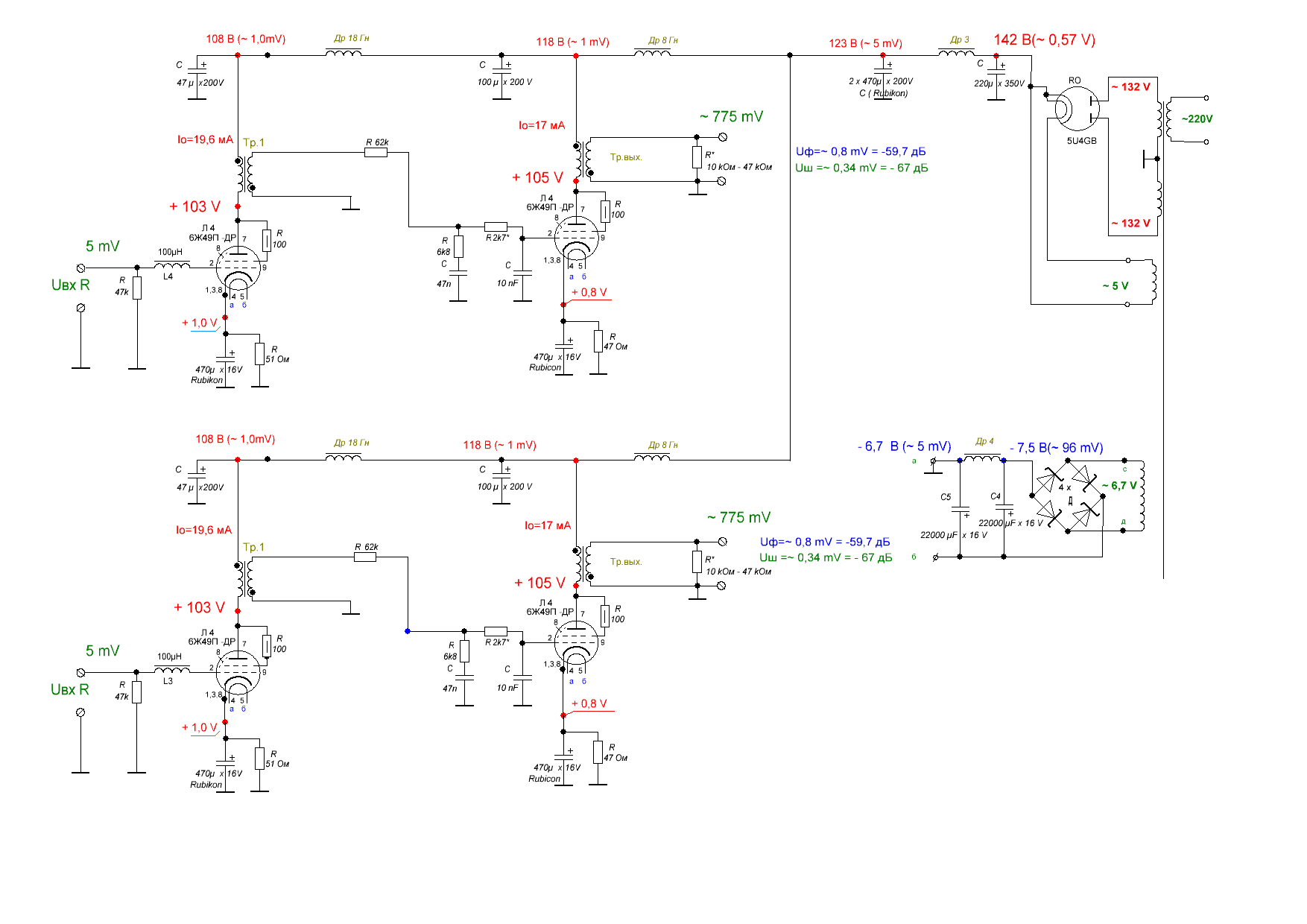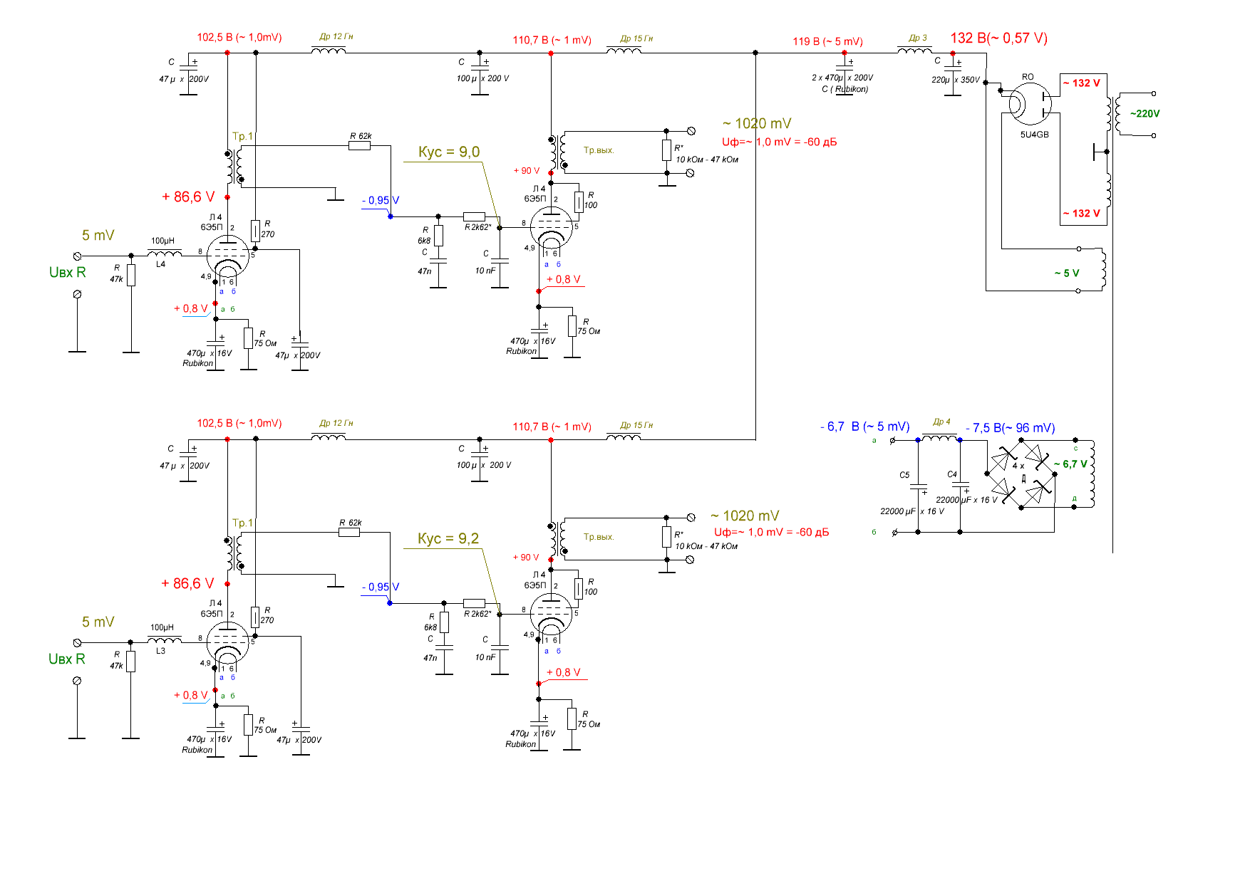 корректора 6Э5П включена тетродом благодаря чему общий характер звука является