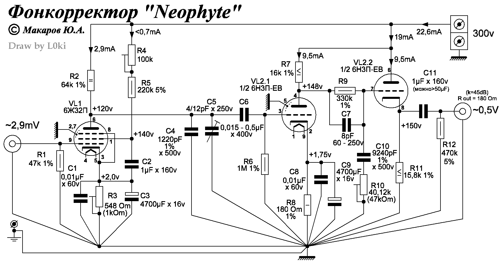 Фонокорректор с RC коррекцией, на трансформаторных каскадах.