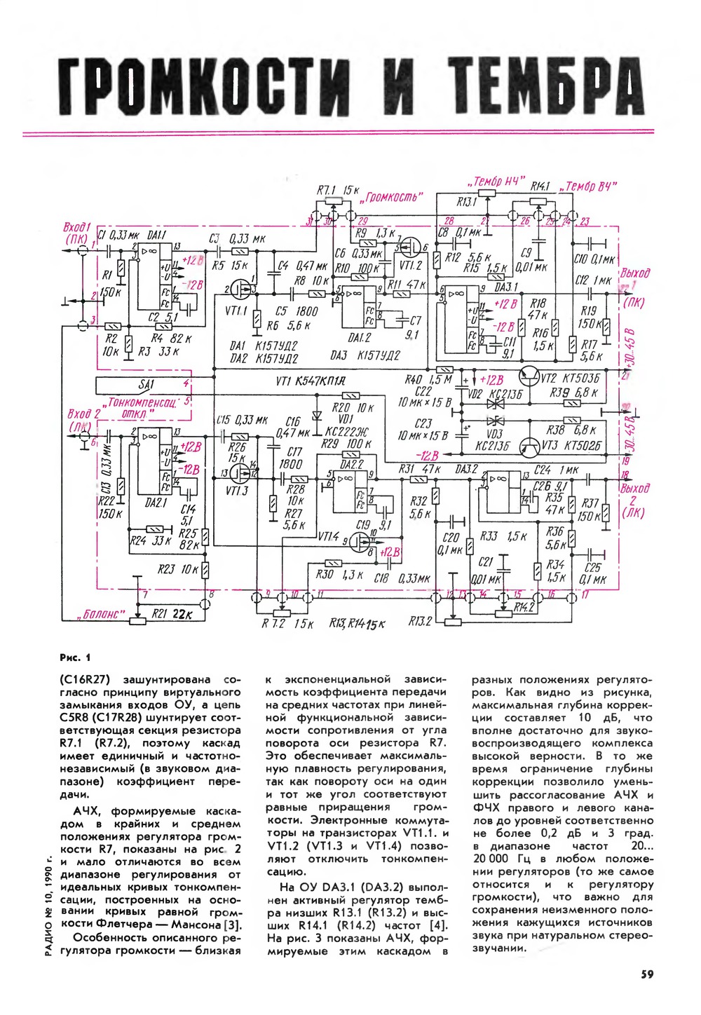 Что действительно прекрасно, так это необходимость применения в таких регуляторах громкости (и тембра) крутилок с линейной зависимостью сопротивления от угла поворота, а не как всегда.