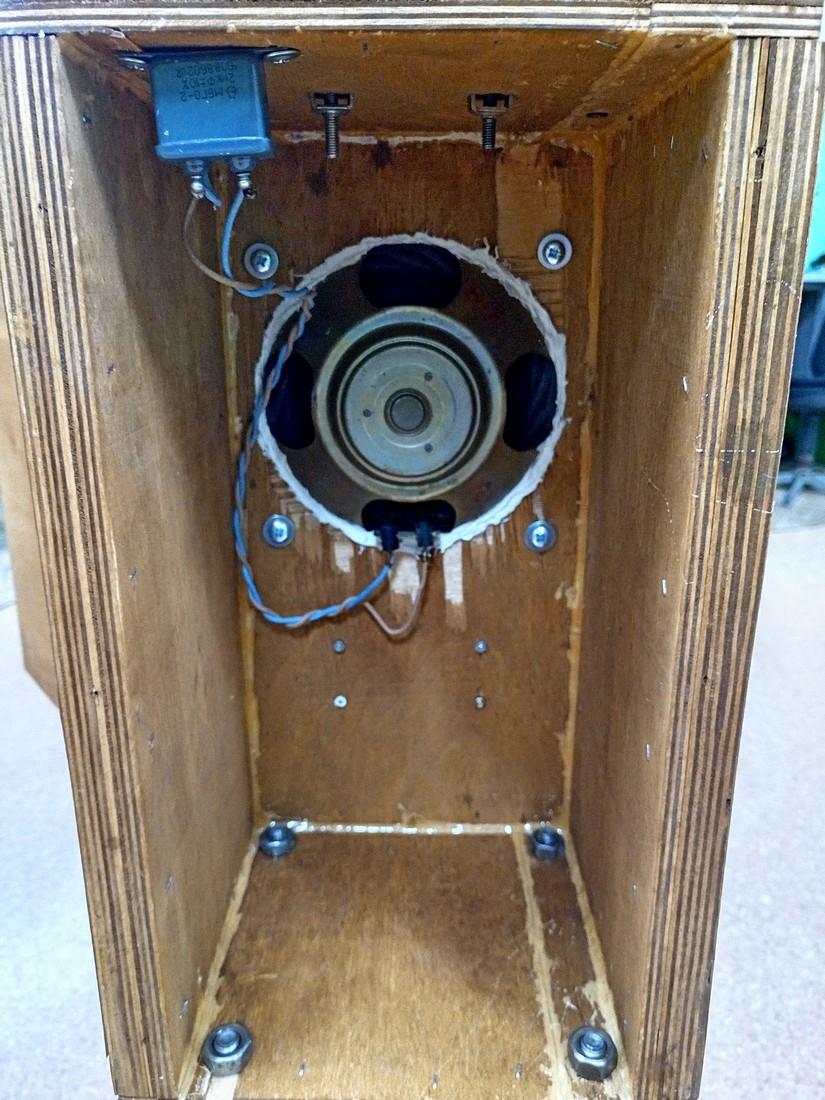 Шапоклякус. Акустика для Чебуратора с Крокодилдой))) Варианты оформления будущей акустики для рабочего сетапа было несколько. Предлагали и абонентский громкоговоритель, и акустику заводской громкой связи. Но я решил все-таки делать акустику самостоятельно. С пиломатериалами тут дело обстоит не очень, поэтому лепил из того, что подвернулось под руку. Поэтому за основу взял транспортировочный фанерный ящик от какого-то прибора. Оформление открытое. Высверлил «дупло», вставил туда ширик 5ГДШ. Послушал. Поигрался с фанерными приставными створками, и понял, что мой будущий «скворечник» будет с раздвижными «ставнями» (так лучше локализация в точке прослушивания, да и отдача по басу выше – его и так катастрофически мало). Вложение: Проходя мимо мусорки, узрел сиротливо лежащую, разуплотнённую в ноль табуреточку. От неё остались только выломанные ноги. Вот их и подобрал… Вложение: Ошкурил от старого лака, отверстия от перегородок залил эпоксидкой. Лишнее отпилил, подогнал по размеру, чтобы конструкция не шаталась. С торца каждой ножки высверлил отверстие, туда добавил эпоксидной смолы и загнал болт 10 мм с предварительно отпиленной шляпкой. Так получились крепежные шпильки для будущих ножек. Вложение: По ящику так же хорошо прошелся шкуркой. Все щели изнутри замазал остатками смолы. Пищалку решил монтировать сверху. Соорудил для нее целый подиум. В ход пошли старые детские «кубики». Все деревянные изделия покрыл морилкой на водной основе (сохнет быстро и не пахнет, вообще классная штука). Пищик крепится за магнит сантехническим хомутом для труб. Вложение: Защитные накладки для динамиков – ненужные шаблоны от радарных уровнемеров. Кожух с проводом, идущий к ВЧ-динамику – стружка из токарки. Добавляют к образу стимпанковости)) Вложение: Ширик прижат к корпусу снаружи импровизированными струбцинками. Щели по посадке изнутри замазаны автомобильным герметиком. Вложение: Створки тоже фанерные. Крепятся на алюминиевый уголок для лучшей жесткости, висят на мебельных шарнирах. Вложение: Вложение: Осталось только внедрить прочный уголок с разъемом, чтобы провод при необходимости можно было отключать. А так – основные работы закончились. Получилось вроде прикольно)) Вложение: Вложение: Вложение: