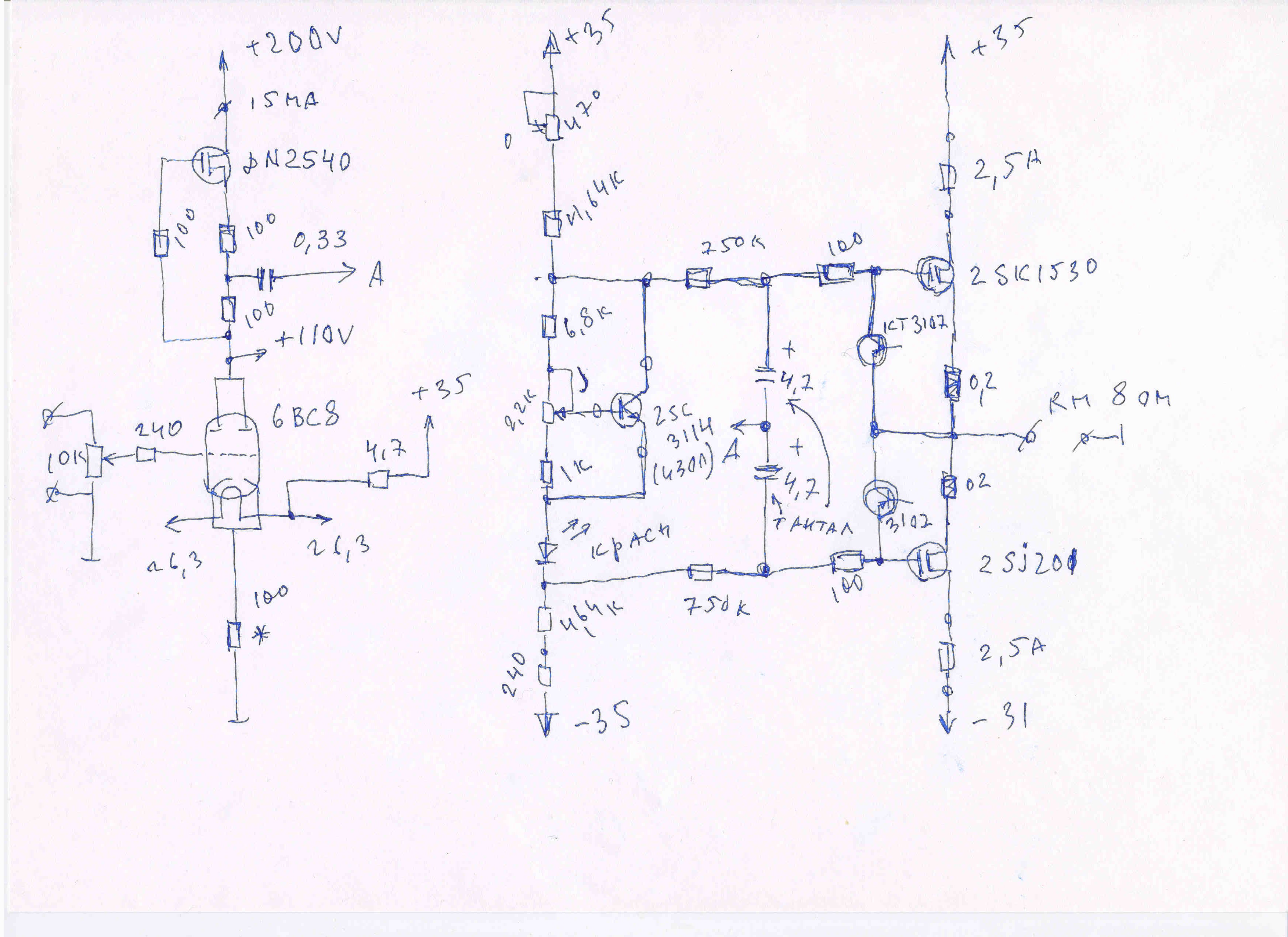 3. Для питания схемы необходимы : +- 35в , +110в, +200в., 6,3в ?