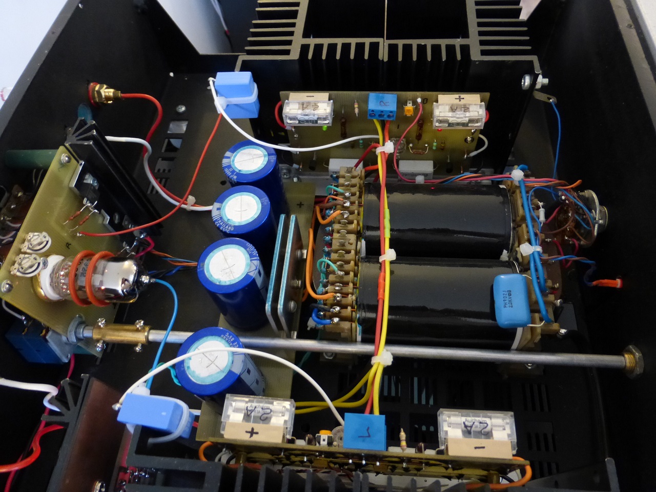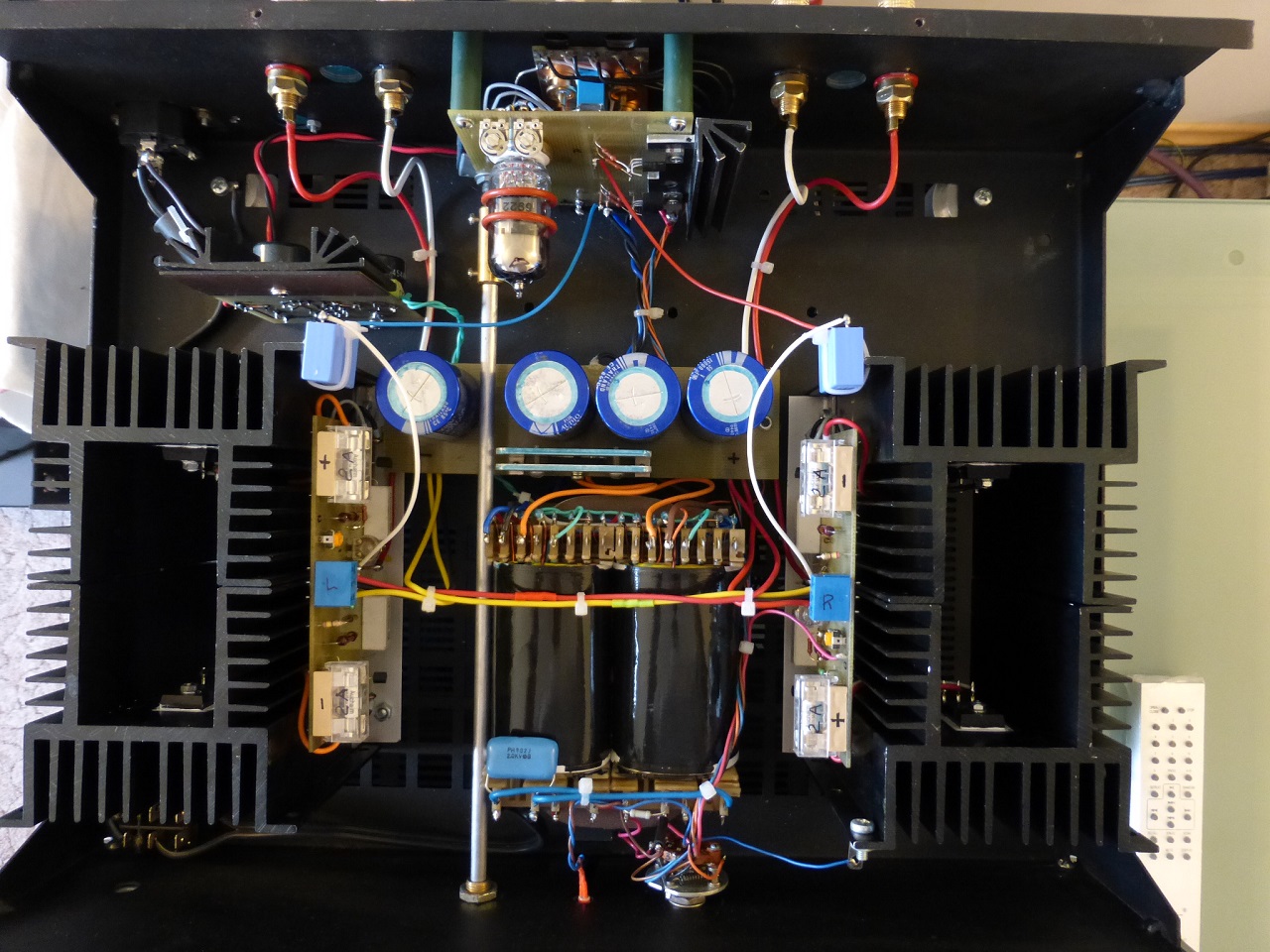 А ещё лучше повстречайся и поговори с самим конструктором Виктором.Сразу скажу,оконечник транзисторный может иметь различные варианты исполнения.А вот драйверный каскад на лампе,это возможно самый лучший по показателям на сегодняшний день драйвер для триодного выходного каскада усилителя.Хоть лампового ,хоть транзисторного.И при высочайшей линейности характеристики и полосы пропускания до 1 мгц имеет выходную мощность 1 ватт.Так что ,он способен продавить любую паразитную ёмкость на входе оконечного усилителя мощности.А значит и обеспечить усиление ВЧ без завала.И обеспечивает высочайшее качество звучания. :cool: Лучше ,пока не знаю. :?