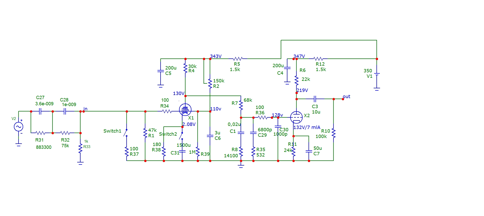 Классика жанра , пентод на входе без всякого миллера свойственного триодам и триод на выходе с анодной нагрузкой.