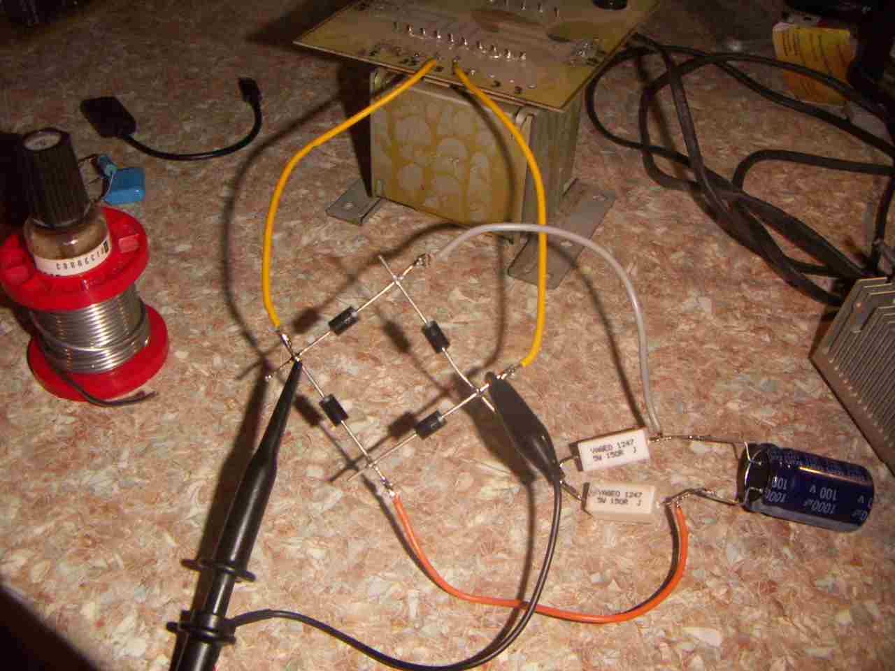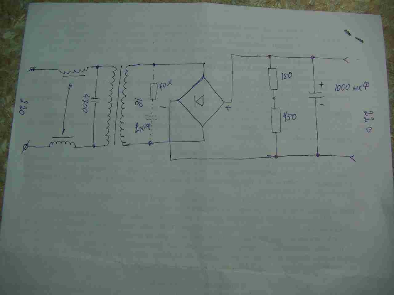 Питание огранизовано транс+диодный мост+кондеры 2000 мкф+7012+кондер 1 мкф(не помню точно).