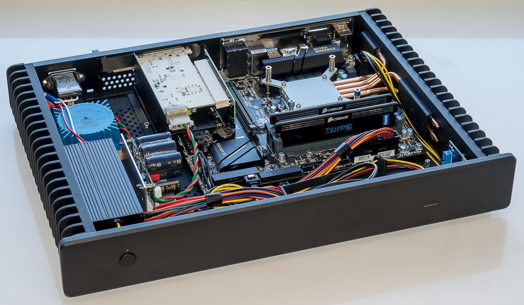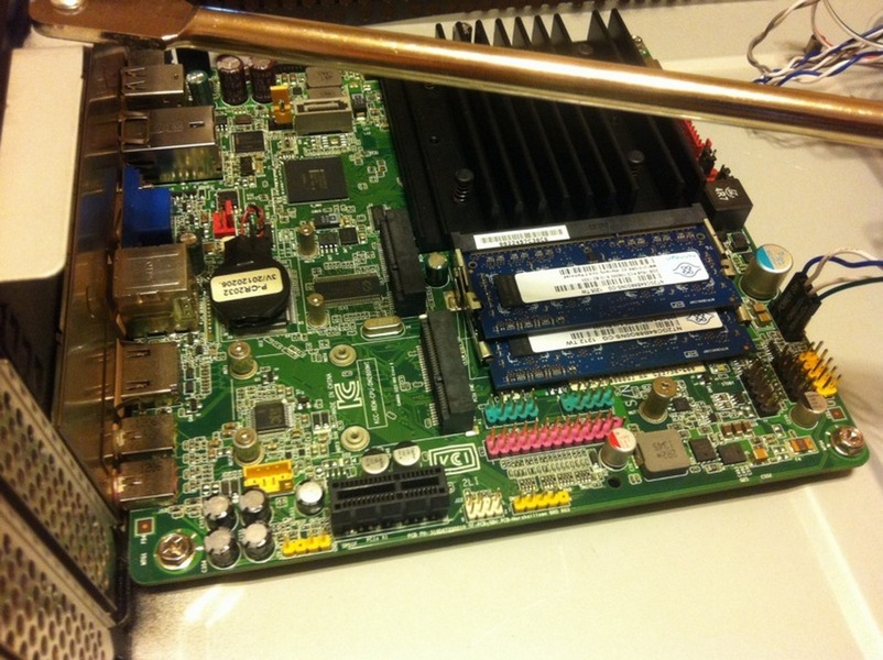 Если по порядку, то начать надо с выбора материнской платы, я купил на Авито не дорогую из рекомендованных специалистами Intel DN2800MT, она с пассивным охлаждением, со встроенным процессором и возможностью запитаться от ноутбучного БП. В ней так же присутствует разъем PCIe, это если вы будете использовать карту вывода соответствующую. Ну и удобный размер thin-mini-itx.