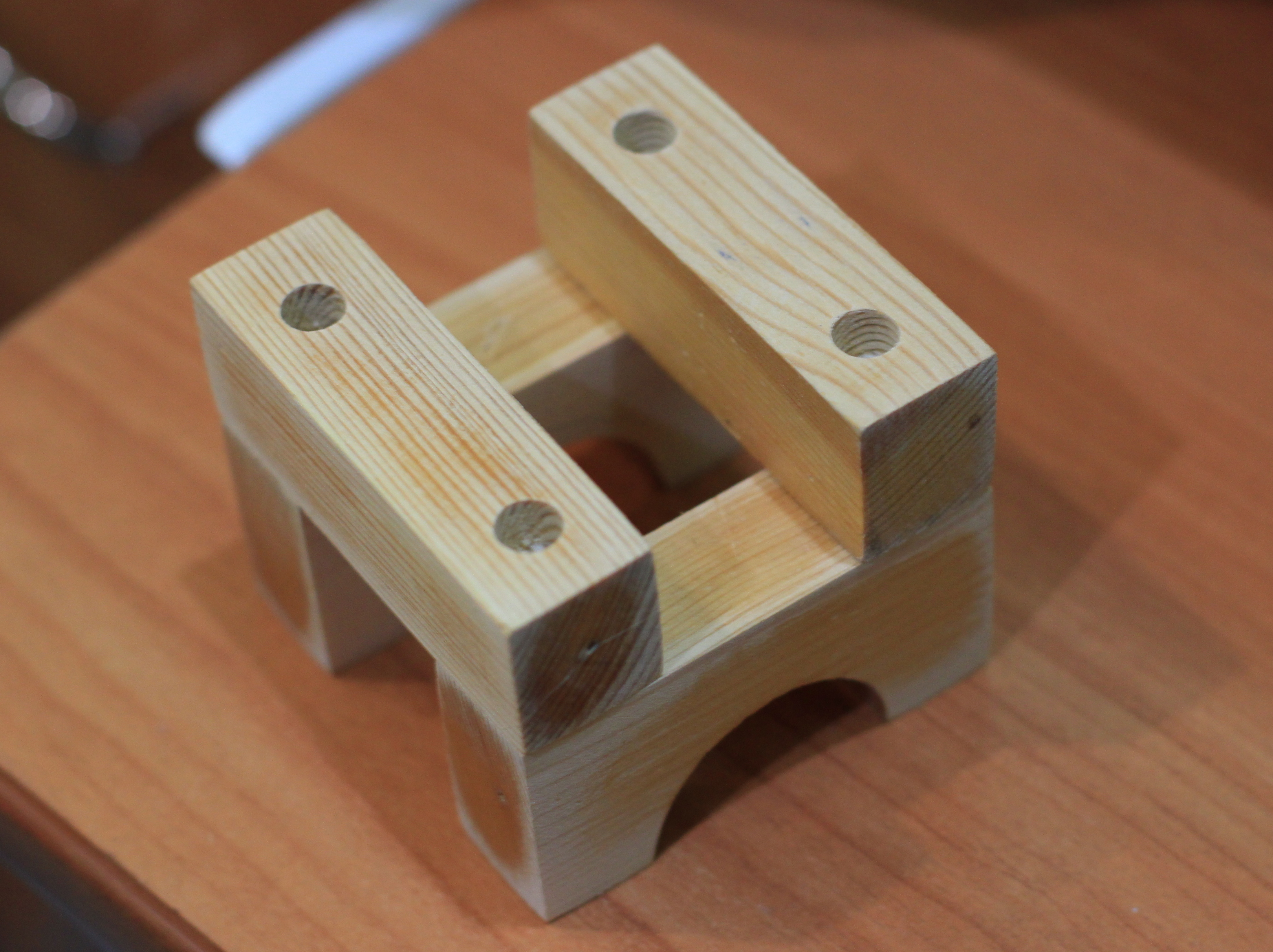 Итак. Тщательно шкурим наши заготовки. Конструкцию садим на клей – можно столярный ПВА «Момент», или обычный. Снизу высверливаем неглубокие 8-мм отверстия.