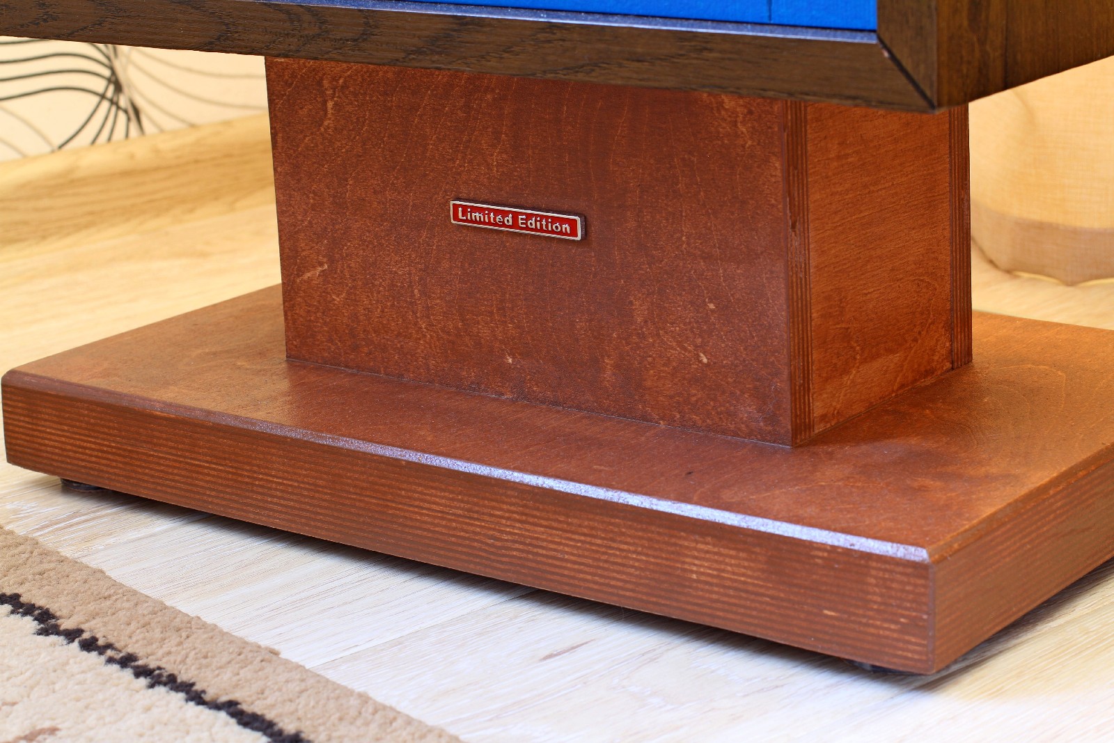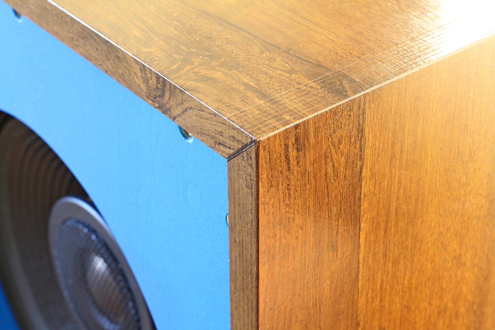 - В конце концов, сам проект акустики реализован очень приятно и качественно. Материал кабинетов - полированная фанера 21 мм, тонировка и покрытие яхтным лаком. Передняя панель то обтянута ПВХ-пленкой, то ли залита тонким слоем ПВХ-смолы синего цвета (дизайнерская отсылка к проф-мониторам JBL 43-й серии). Интегрированная (неотделяемая) подставка. Качественные, массивные терминалы подключения. Тщательная проклейка швов, демпфирование (причем не от балды, а с расчетами по материалу, впрочем, как и все остальное акустическое оформление). Одним словом, воплощена акустика с душой, а главное – прямыми и талантливыми руками.