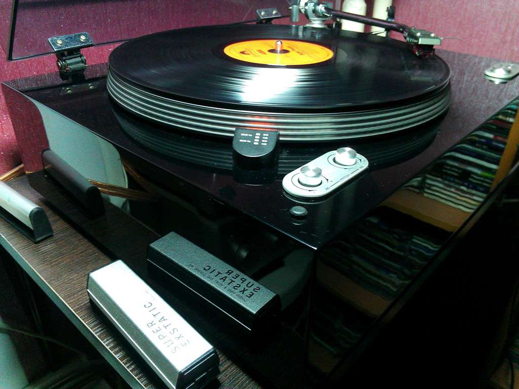 Сегодня-таки добрался до своего вертака. Решил поменять смазку подшипников в тонарме. Проблема не в том, что шарики мелкие, проблема в любознательном коте.