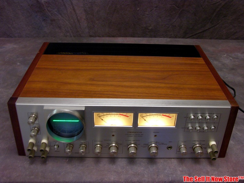 Это аудиоскоп Pioneer SD-100 (для остального мира SD-1000), выпуск 1971 года. Позднее Пио выпустил следующую модель , SD-1100 , она, несомненно, симпатичнее и немного дополнена по функционалу, и , конечно, каждый пионеровод мечтает о такой коробочке, но её цена вне рамок бюджета основной массы фанатов. Он выполнен в стиле , присущем основным компонентам. Красавец!! Мой вариант несколько “ёлочен”, в основном из-за своих цветных индикаторов, но я решил следовать принципу своего приятеля, согласно которому рекомендуется “торчать на малом” , чем себя и успокоил. Да, так выглядит мечта :