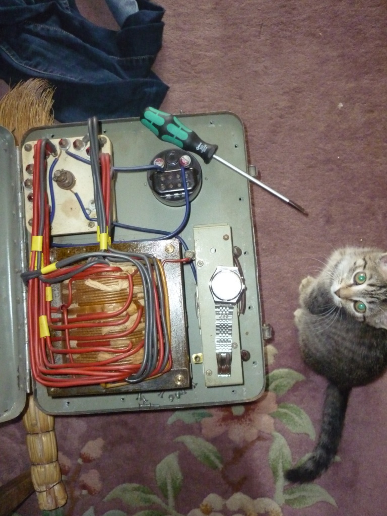 вот такой шикарный автотрансформатор мне достался. судя по дате на стрелочнике 1945 года розлива сие замечательное изделие. на 100 вольт пробовал грузил 15А нагрузку - молчит как рыба об лед и не греется. степовая регулировка напряжения от 90 до 140 вольт. есть отдельная обмотка 5В 20А видимо под лампу просвечивания.
