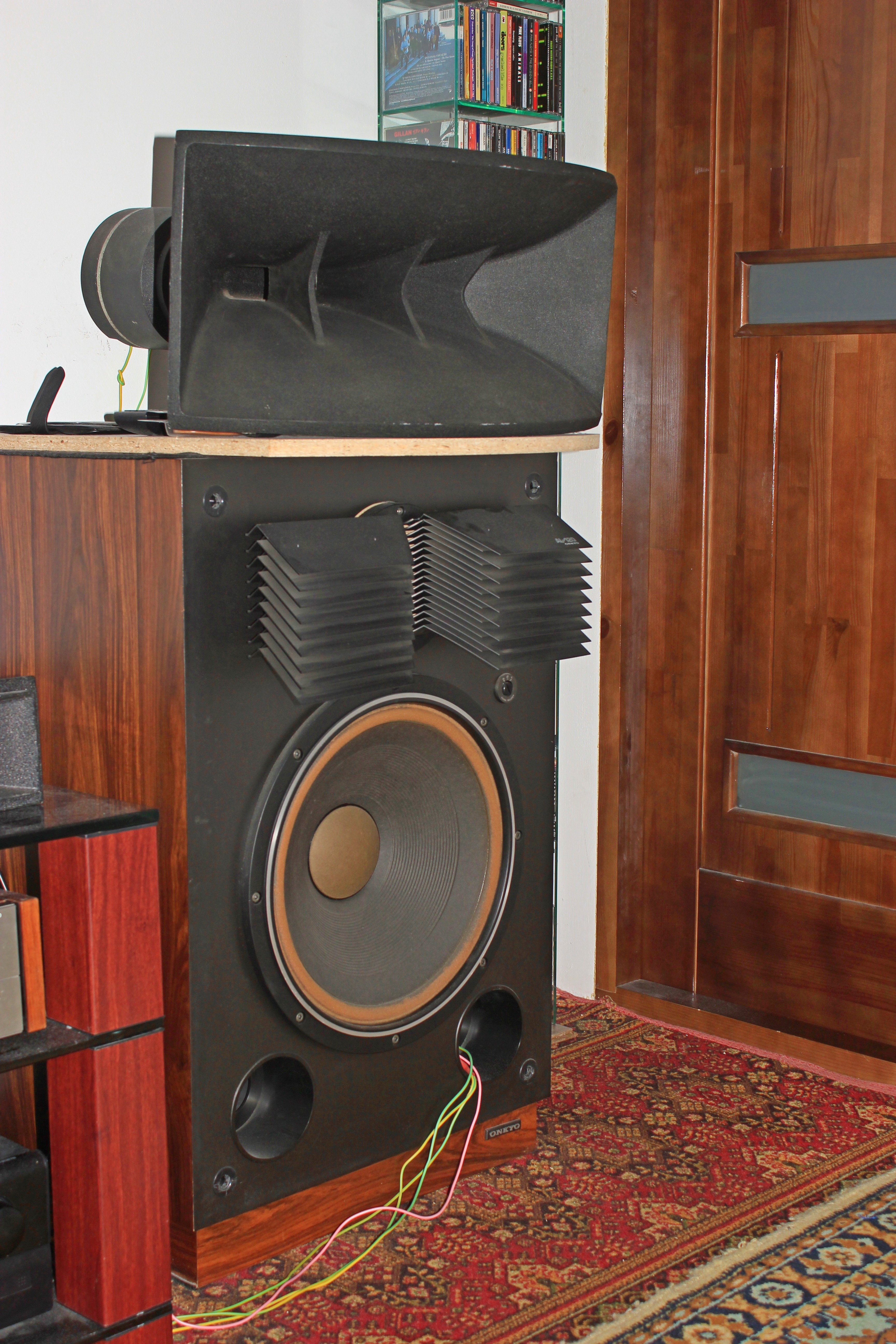 Я перелопатил весь русскоязычный Интернет. Походу, рупора эти - вещь КРАЙНЕ редкая - нашелся только один "засветившийся" владелец - некто Леонид с форума "классикаудио" (он же - Зимогор, на другом ресурсе). Именно с его подачи Олег начал "копать" эту тему. Сам Леонид высказался в пользу Онкио (TAD'овсие рупора им были признаны более "крикливыми", резкими; а Альтеки - "вообще отдыхают"). Вот Onkyo Mid Range Horn H4003S в системе Леонида - сразу видно: человек, что называется, "шарит"!