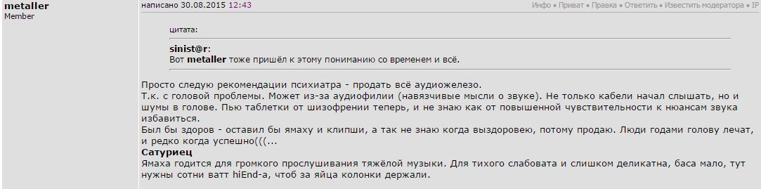Всеволод, у него манера такая - опустить все. А за базар он не отвечает. Сразу начинает запутывать какими то ссылками, и вообще молотит хрень какую то. Ну а про усил, то если он тебе интересен, то попробуй послушать его с принципиально другой по характеру акустикой. Мне кажется все же что колонки эти вообще к нему не пара.