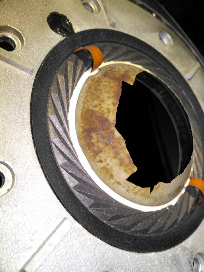 Версия о "саморазрушении" представляется крайне сомнительной - материал диффузора достаточно прочен, но отличается по поведению от обычной титановой фольги.
