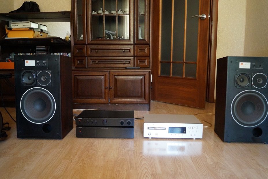 Fisher + JBL 4312B комната 18кв/м, толстые обои, из мебели диван и стойки для пластинок