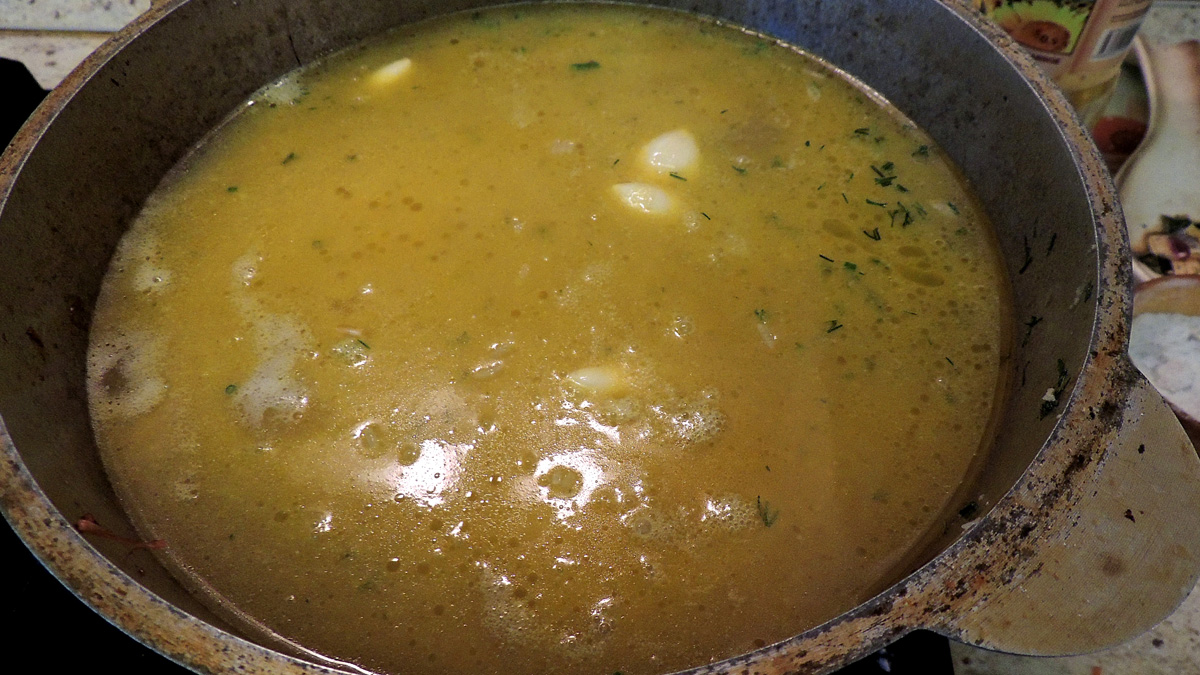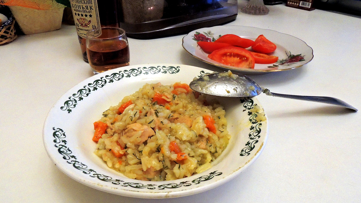 и засыпать его сверху рисом. В рис я обычно втыкаю дольки чеснока. Они потом малость всплывут, но не страшно, функцию свою чеснок выполнит.