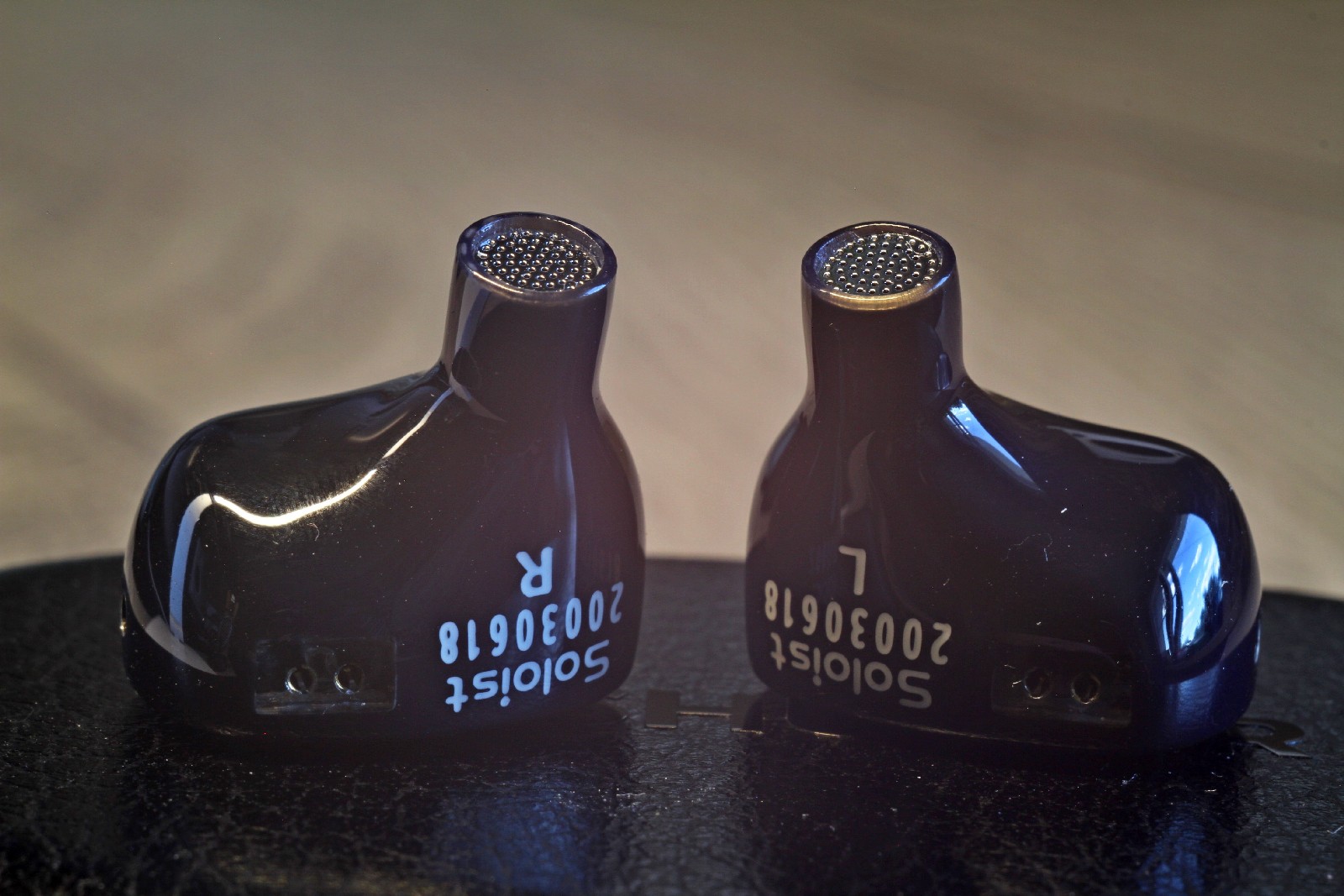 И в то же время надо отметить высокое качество материала корпусов (это похоже на какой-то магниевый сплав). Наушники приятны на ощупь, и не вызывают дискомфорта при использовании, чему дополнительно способствует анатомический выступ на корпусе. Звуководы короткие, но зато имеют бортики для фиксации амбушюр. Выход прикрыт мелкодисперсной сеткой. Одно компенсационное отверстие находится около звуковода, и еще трое – прямо в центре фэйсплейта.