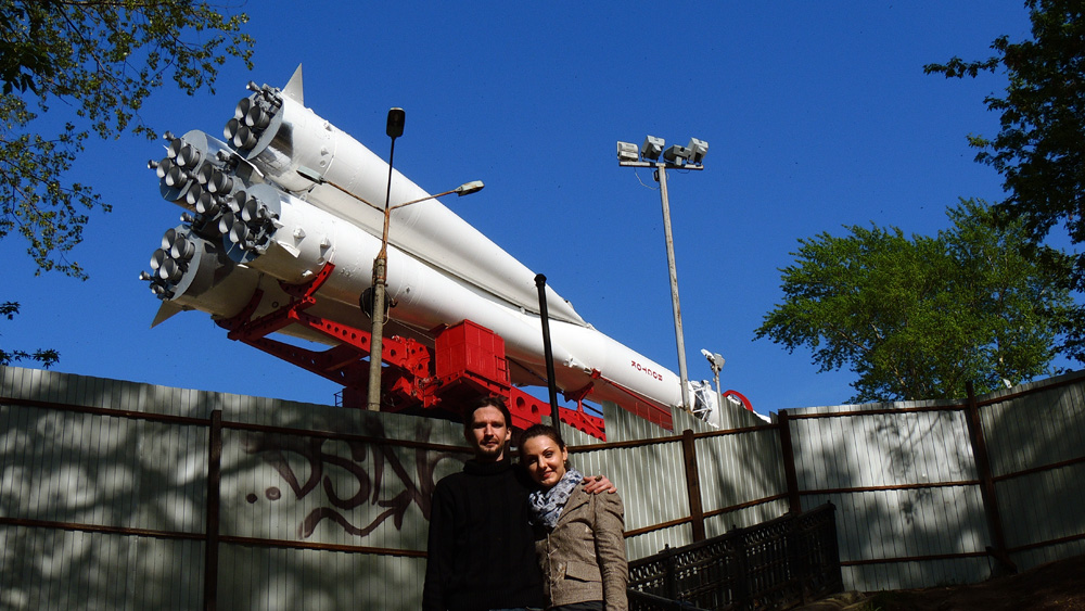 Тогда мы решили подойти и сфотографироваться на лестнице перед знаменитым кораблем "Восток" - но подход к ракете был загорожен металлическим забором, так как началась реконструкция музея и прилегающей территории. Особо не расстроились, хотя осадок остался. Но несколько фотографий все же сделали.