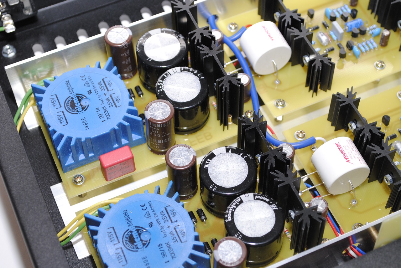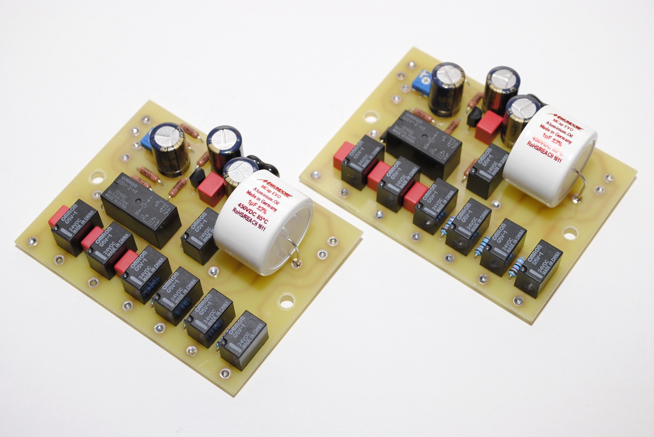 При изготовлении используются такие комплектующие, как конденсаторы Mundorf EVO, WIMA FKP, ELNA Silmic II, точные резисторы Vishay, в цепях коррекции применены резисторы DALE, силовые трансформаторы TALEMA, малосигнальные реле OMRON.
