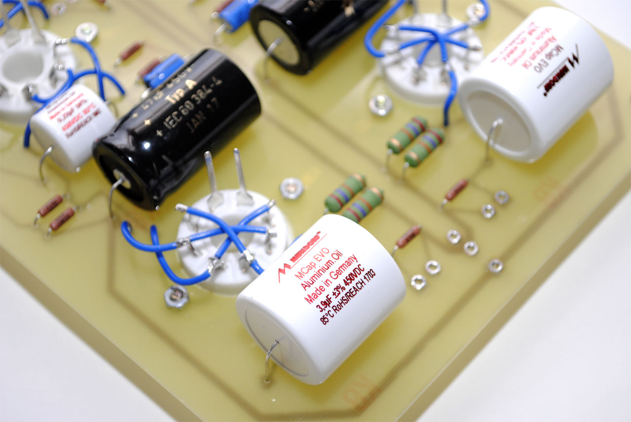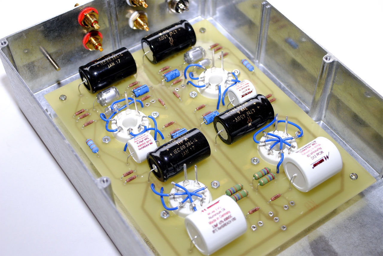 Это выпрямитель накала (4700uF х 8). На анодное - два сдвоенных Mundorf 50+50uF. |