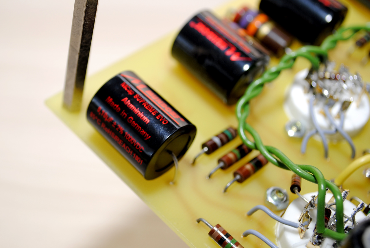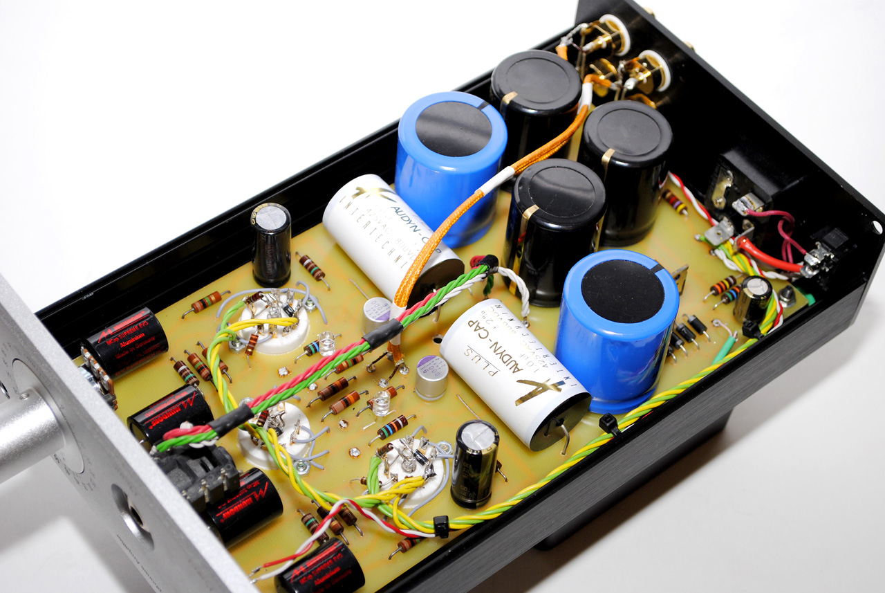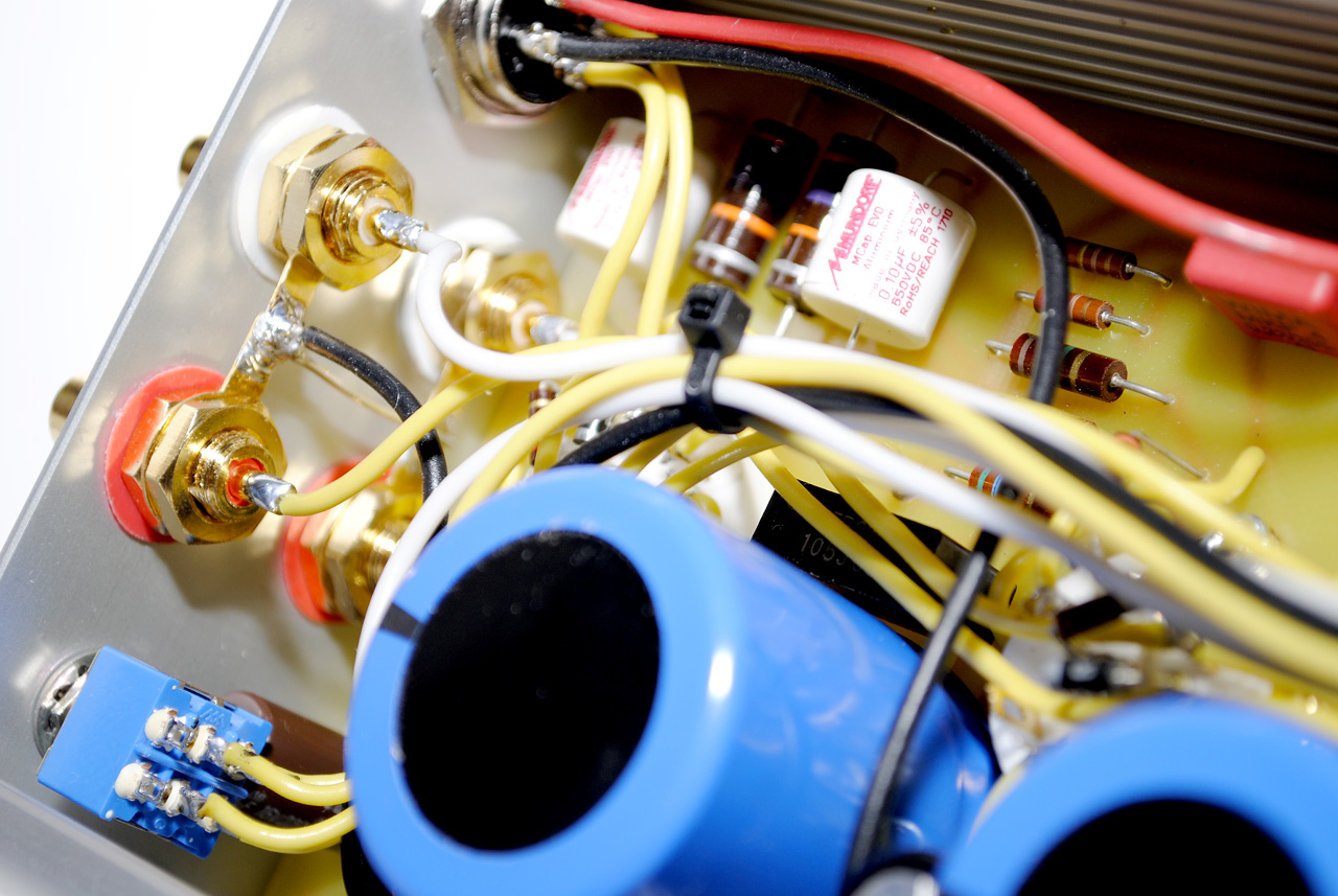 Данный экземпляр имеет два входа, два параллельных выхода (3.5мм и 6.3мм) и переключатель импеданса наушников (LO для 32-100 Ом и HI для 300-600 Ом).