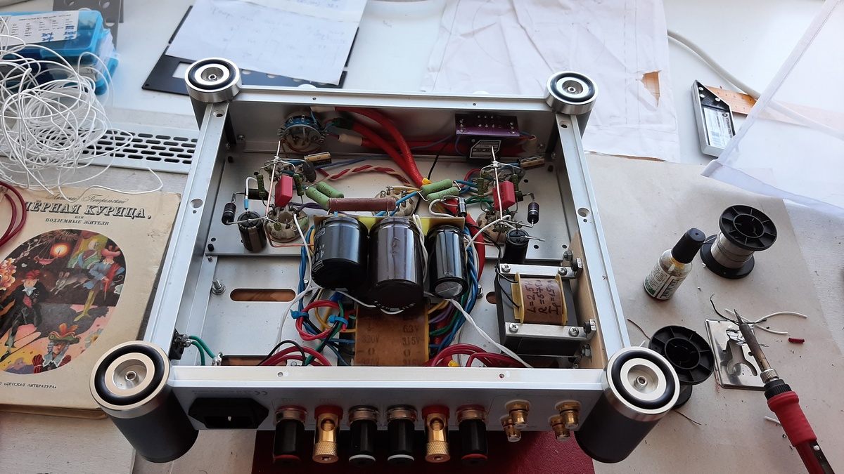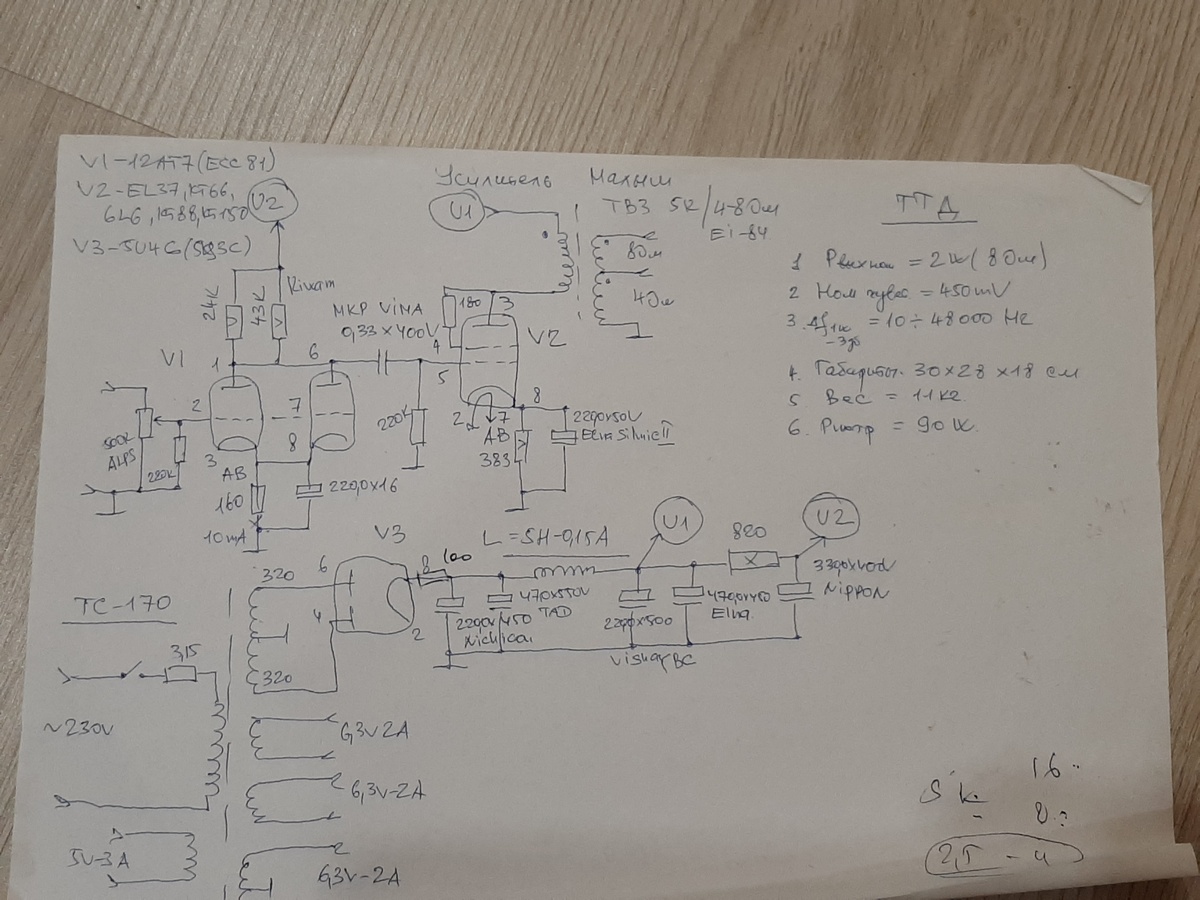 Схема-классика...драйвер ЕСС 81...их много у меня, два триода в параллель...хороший ток, нормальное усиление. Выходные трансы и дроссель от Аудиоальт...на немецком железе.Усилитель получился очень музыкальным...жду колоночки к нему...отпишусь.