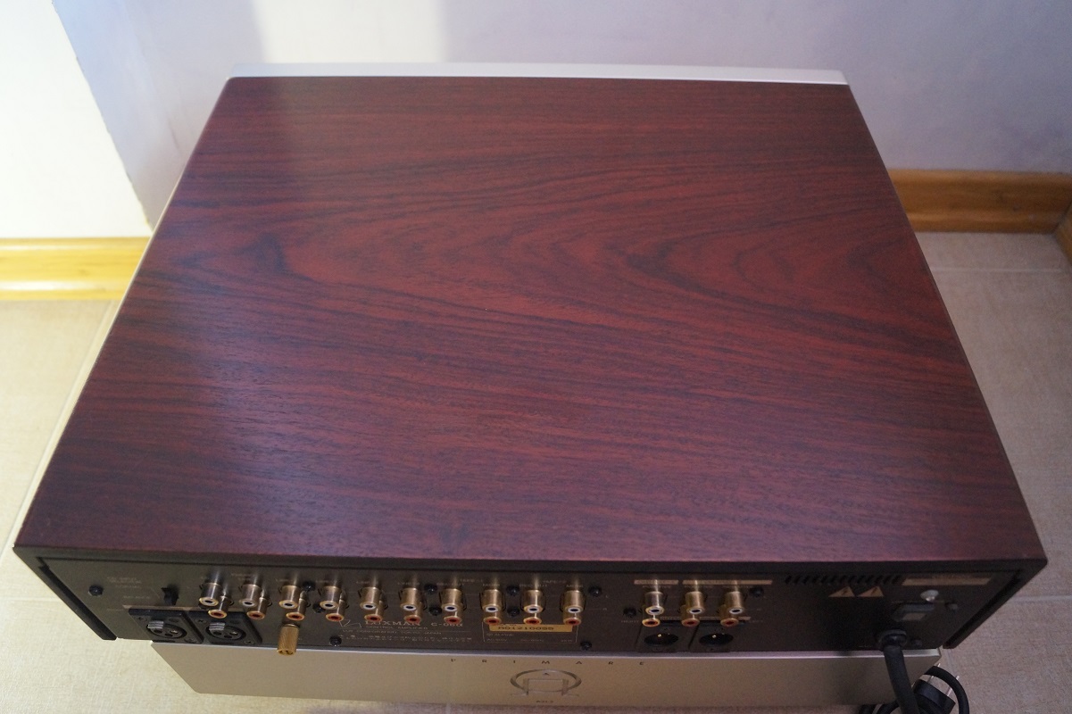 Роскошная двойка предварительного усиления и усиления мощности в цвете шампань. Имеют балансное XLR подключение, полное двойное моно, даже трансформаторы у каждого компонента отдельные на каждый канал. У мощника очень большая энерговооруженность, батарея конденсаторов 40 000 мкф на канал.