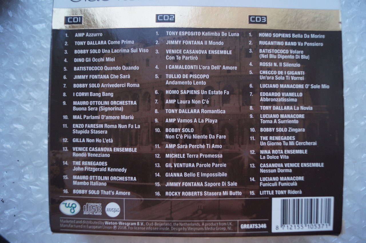 Диски в состоянии, близком к идеальному. 1. Adriano Celentano ...Adriano подарочный бокс-сет 4 диска мини-винила, толстая книга, Италия, 4 500р. 2. Adriano Celentano Il Ribel Le Rock тройной сет, Италия, 3 000 р 3. Ciao Italia - сборник итальянских хитов на 3 дисках, Италия, 3 000 р. 4. Pavarotti Forever - двойной, EU, 2 000р.