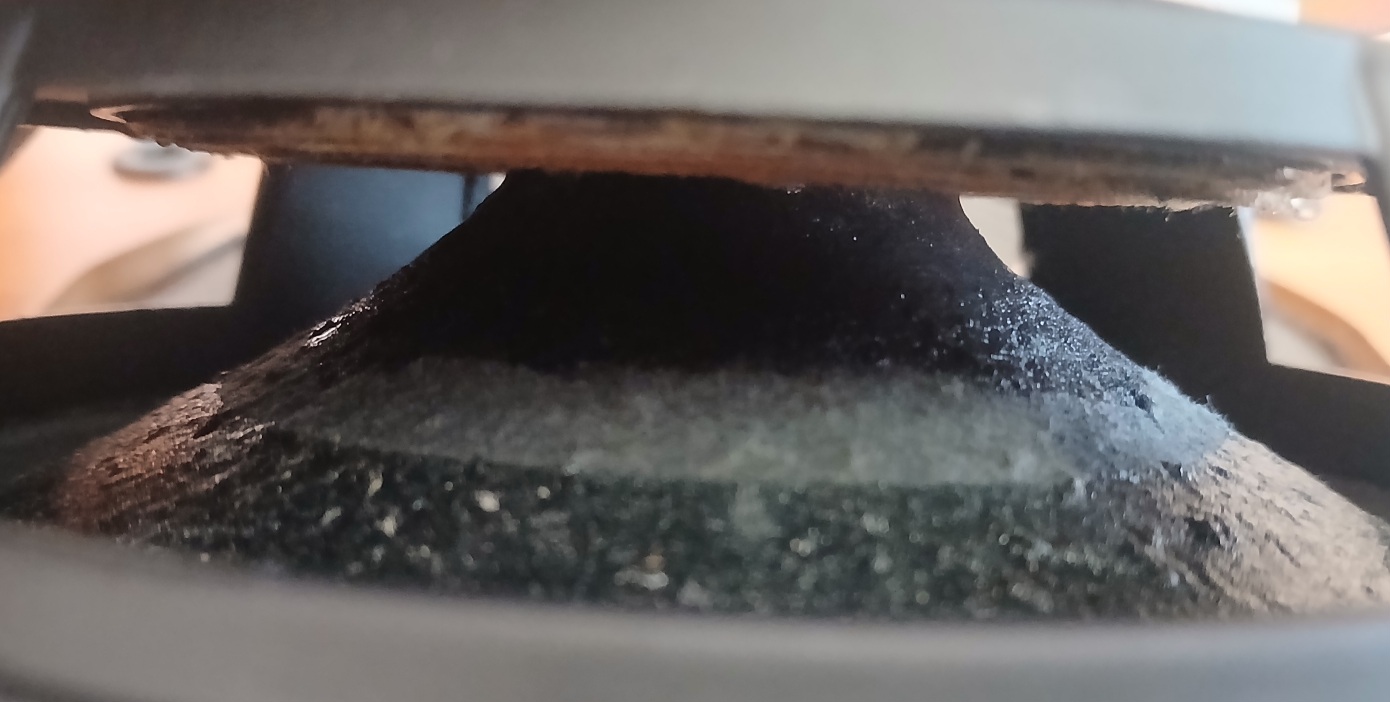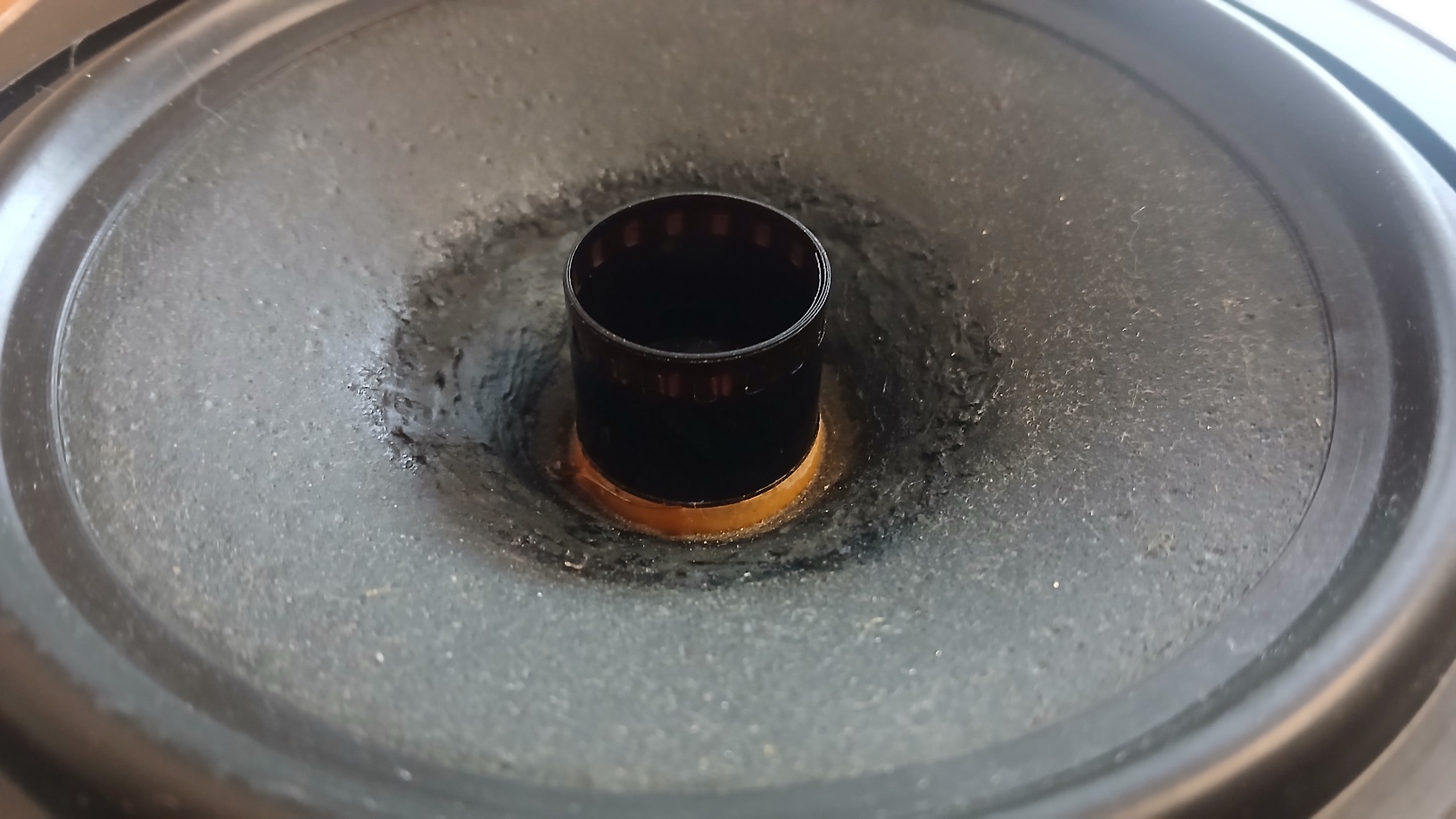 Причина ремонта: жалобы – на некоторых частотах в НЧ спектре были слышны вибрирующие призвуки. Вероятно "ломался" диффузор, ослабленный у горла из-за повреждений при неаккуратном снятии колпачка. После нанесения новой мастики на поврежденные участки (резинобитумная невысыхающая виброизоляция, растворенная в бензине) и пропитки CHITIN, сушки и установки, при проверке с помощью АудиоДоктор FAQ 2 никаких призвуков не обнаружено