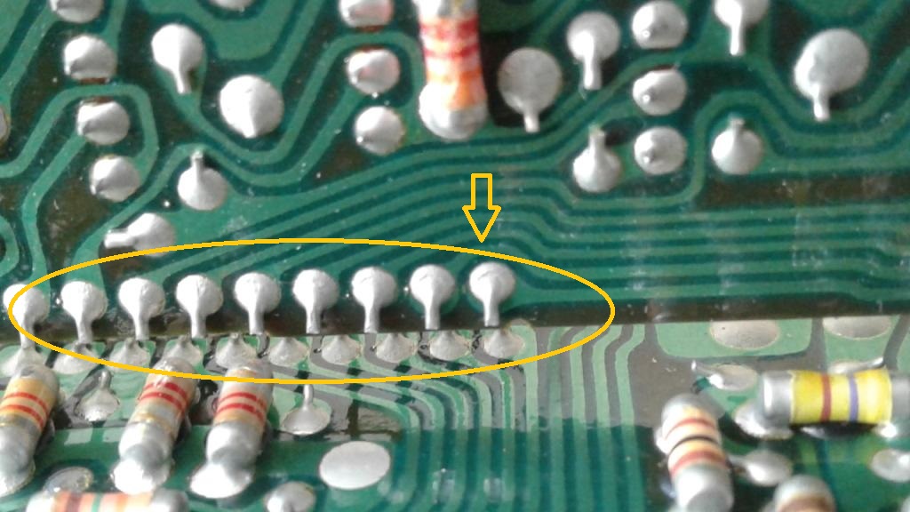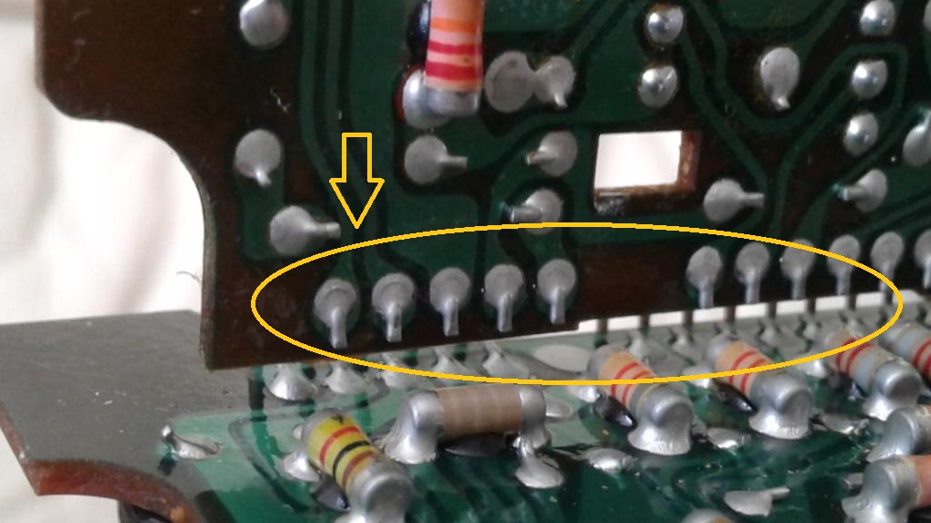 Разобрал тушку, открутил раму основной платы. Позабавил SMD монтаж. Вернее его ранний вариант - на плате всё равно рассверлены отверстия, но сами элементы распаяны поверхностно, хотя они и довольно крупные Вложение: А вот так выглядит блок индикации. Царство светодиодов. Вложение: Ну и виновник разбора - деградировавшие пайки в сочленении плат. Пример того, что некая мифическая "некопанность" техники это якобы достоинство при продаже, но на самом деле достоинством не являющаяся. Пусть уж лучше "копанная" специалистом, но рабочая. Такие пайки рано или поздно приведут к полной потере контакта и отказу техники