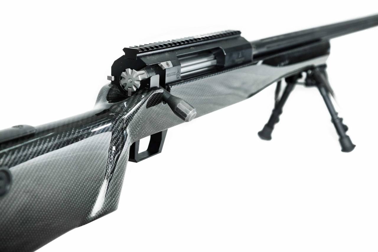 Приклад выполнен складным для портативности при выборе большой длины ствола и значительно усилен для стрельбы наиболее мощными патронами .408 Cheytac.