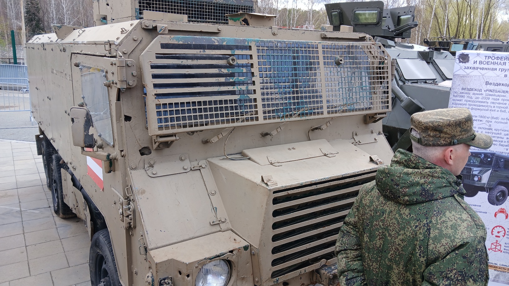 Отчасти прошлогодние экспонаты предоставленные различными трудящимися из разных стран. Плохо, что наши трофейные команды привели всё в более менее удобоваримый вид, в сожженном и ржавом исполнении было бы аутентичней. Хотя и так понятно, если у броневика вместо переднего моста клетка из арматуры и ЗиЛовские колёса. Особый интерес представляют инженерные машины типа Геркулеса, аналогичный давеча на учениях в Литве в болоте утонул. Ну и МаксПро конечно удивляет. Размером с железный гараж, даже если глаза закроешь, всё равно попадёшь. В павильоны-палатки сунулся было, но быстро ушел. Много народу, особенно детей, брутальные мужики с пивным пузом, наперевес с останками пулемётов фоткаются. Типа крутые. По мне, если крутой, записывайся в добровольцы и фоткайся с передовой хоть доть усёру. А так, не тобой добыто, не тебе и брать его в руки. Ну в общем как то так.