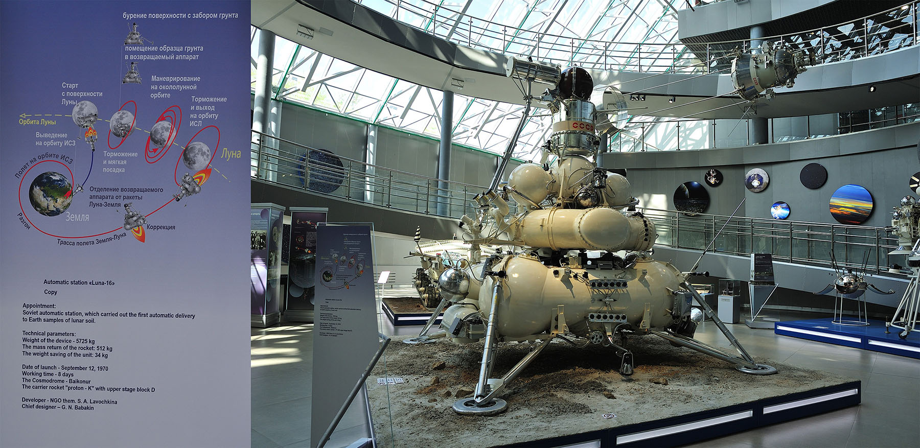 Там тоже довольно много интересных экземпляров, В частности, стенд полностью посвященный Королеву с видеофильмом о нем и его КБ.