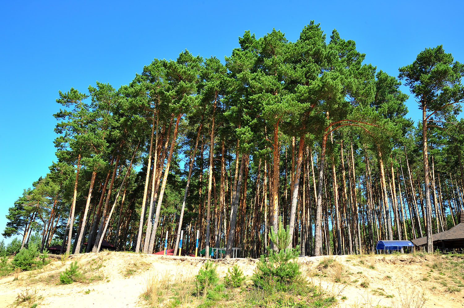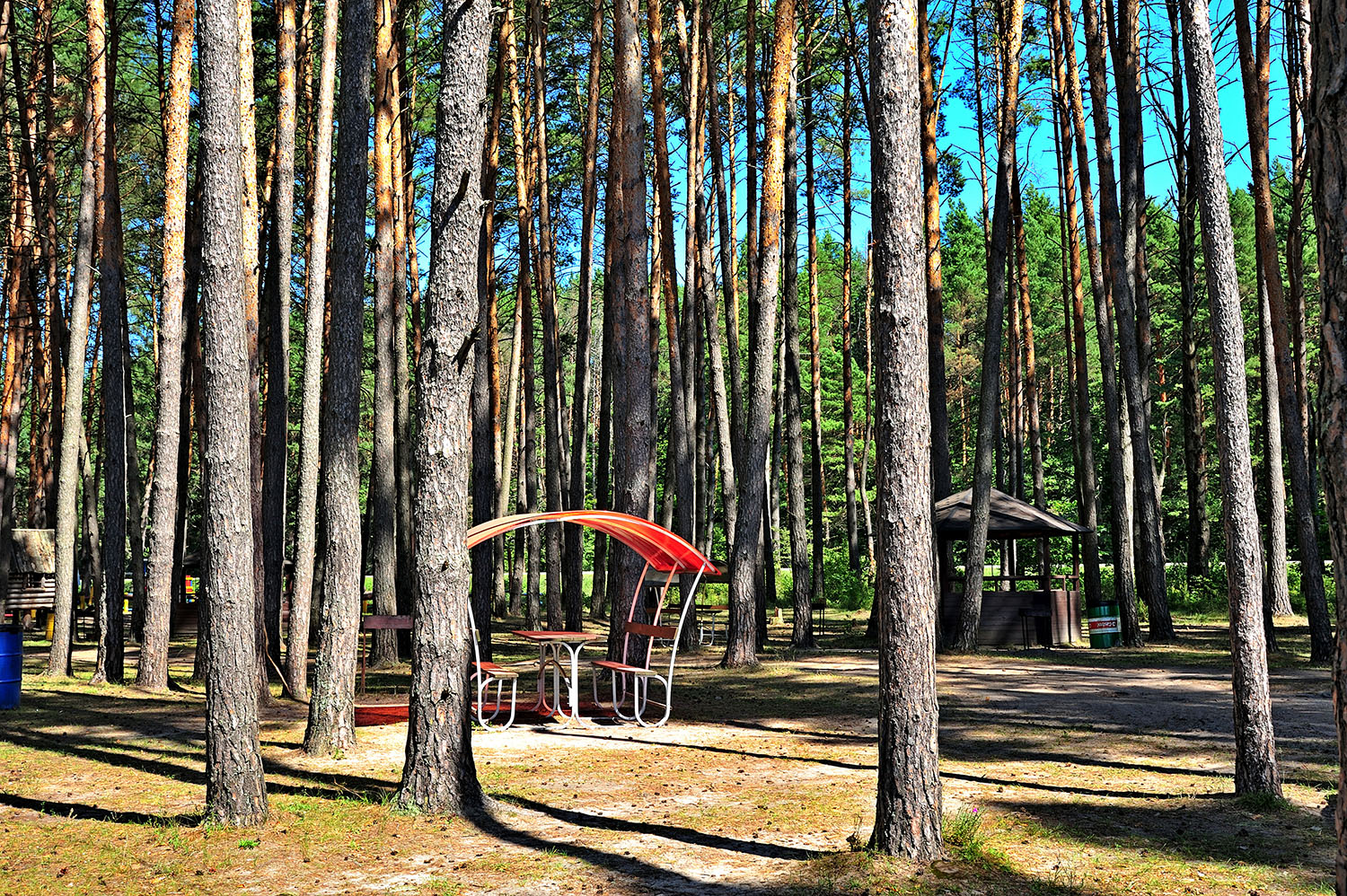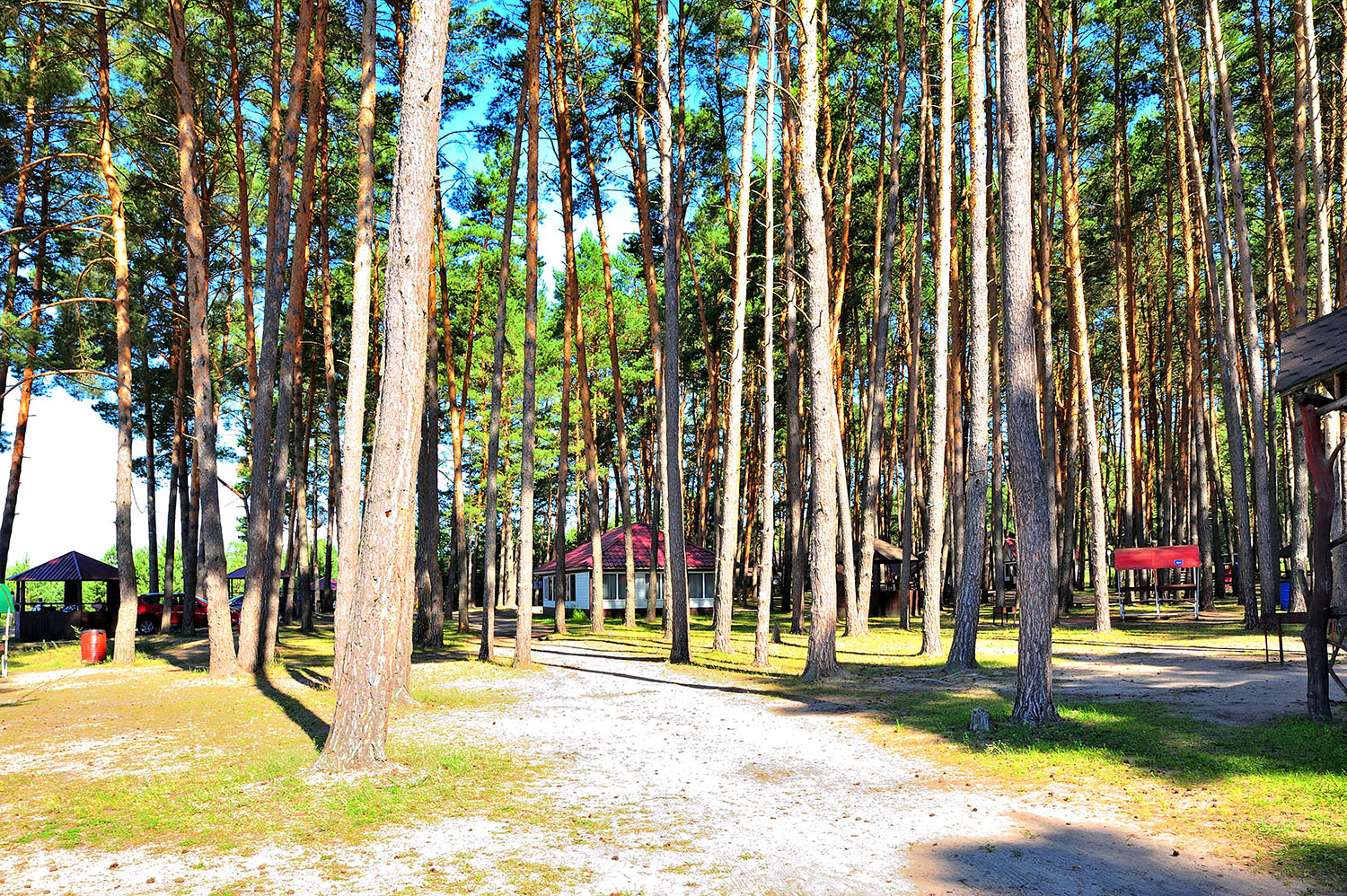 В соснах все оборудовано для пикников-шашлыков-мангалов, есть пара магазинчиков, шатры, беседки, стоянки для авто. Можно на машине и в сосновый бор заехать, всего за 300 р.