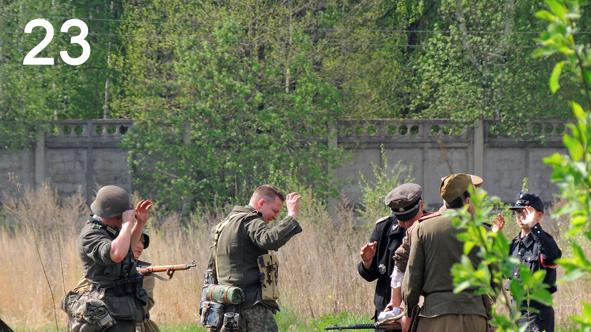 Далее не удалось снять, ибо папашки стали сажать детенков на плечи и весь обзор перекрыли нахрен! Вкратце - фольсы дали залп поверх голов и отпустили янкесов. Те помчались быстрее мустангов, но эсесманы не дремали, и одного подранили. А фольксов расстреляли.