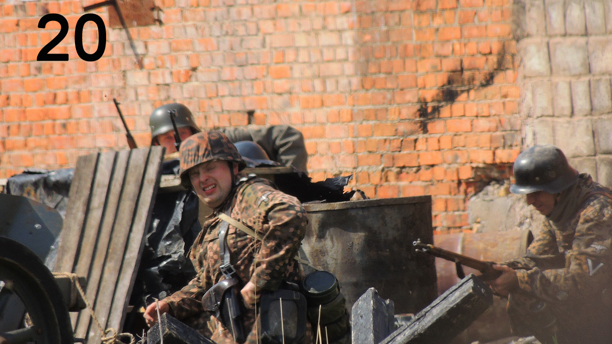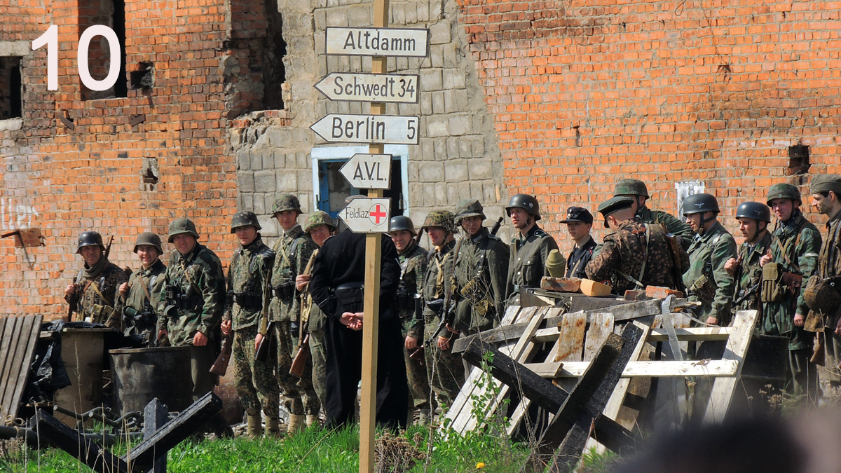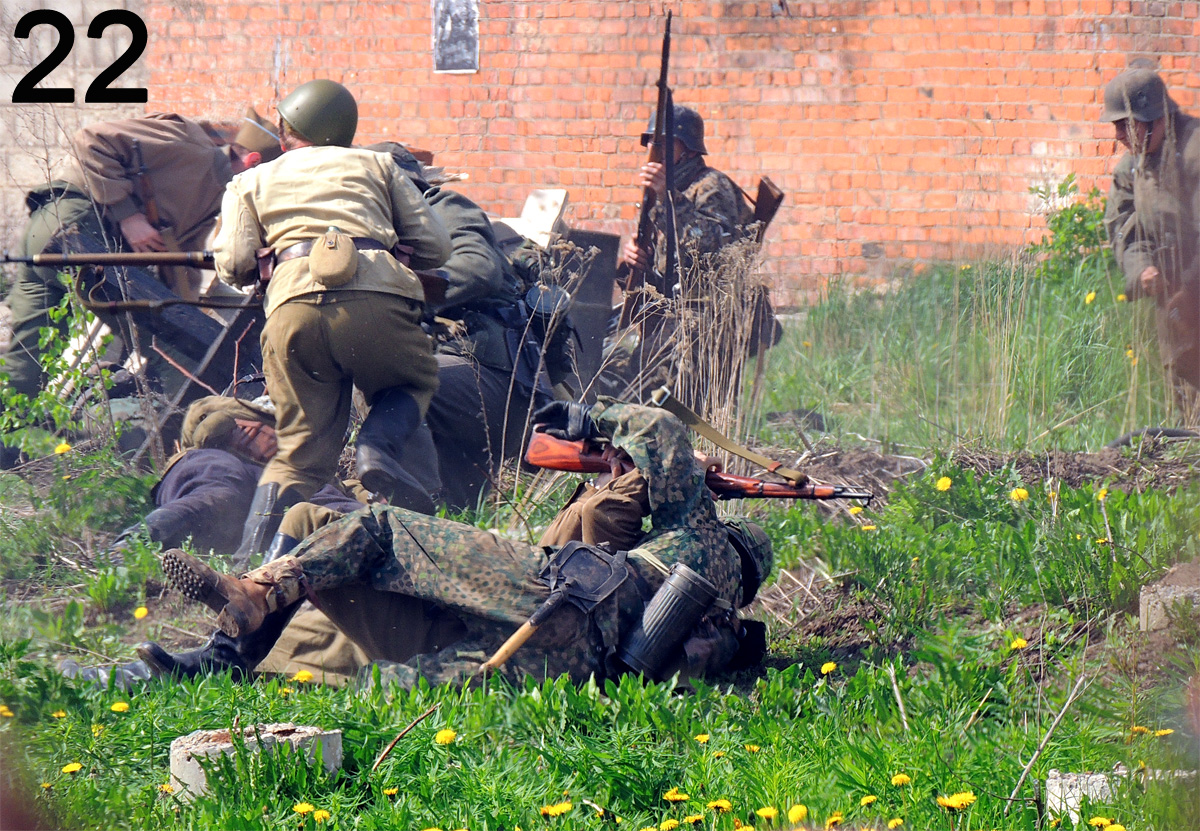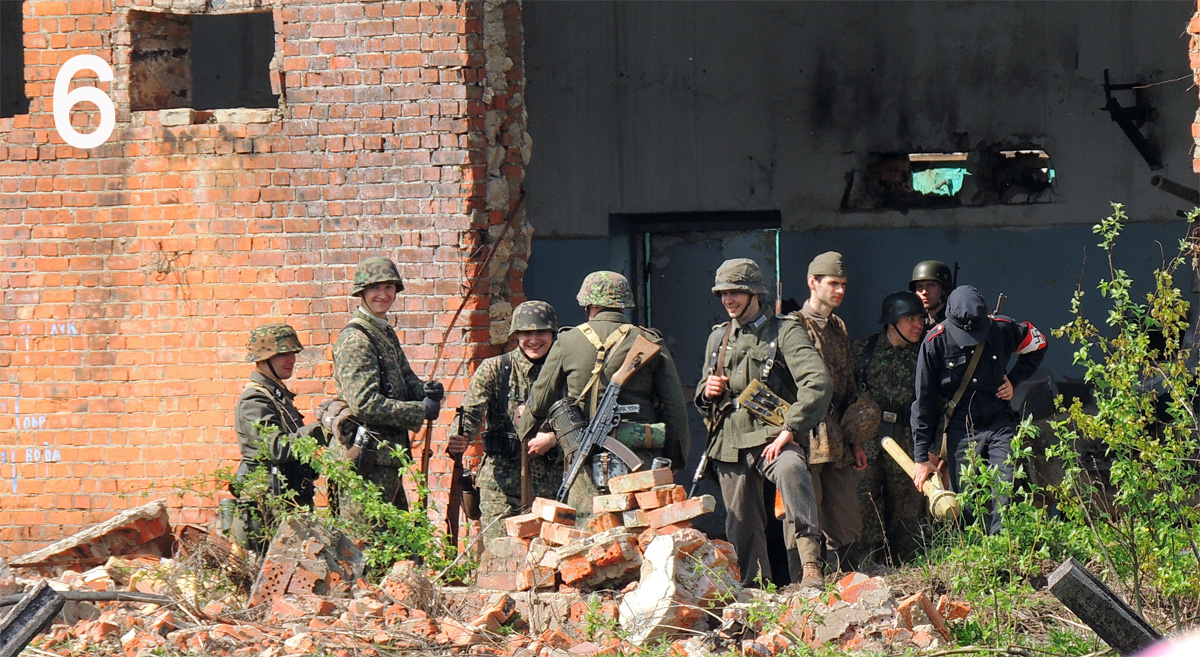 Итак - окрестности Берлина, немцы окопались в полуразрушенном здании. Рожи довольные.