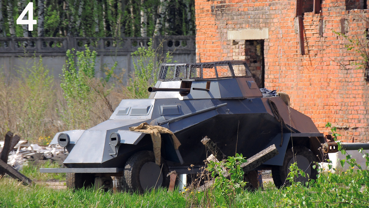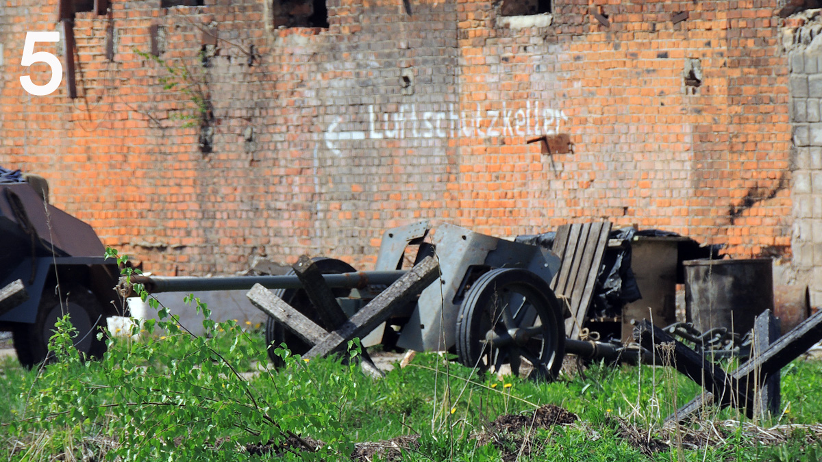 Подступы к зданию охраняют броневик (не силен я в них, знатоки уточнят) и пушка Pak 38 (по моему).