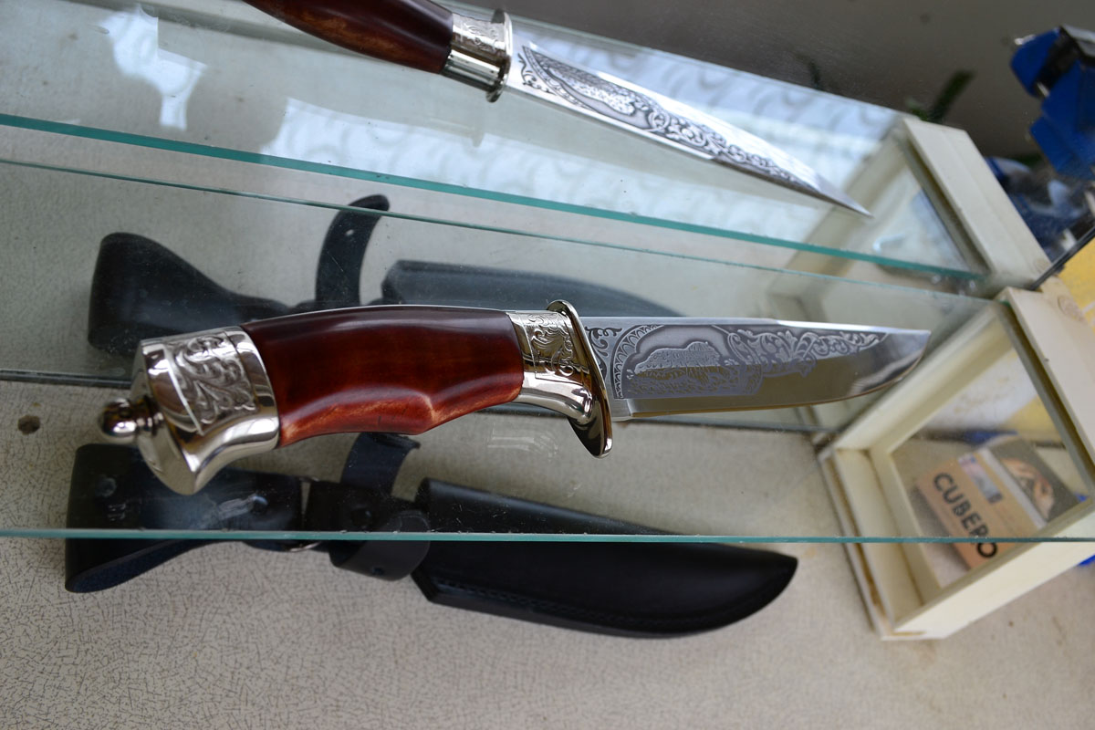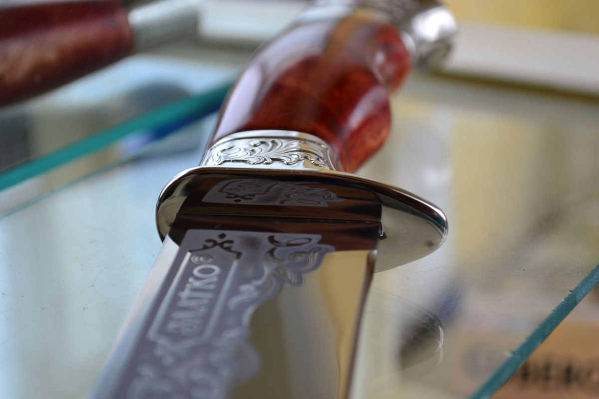 Из очередного: нож славных златоустовских мастеров "Турист-1". От того Туриста, что был у меня ранее viewtopic.php?f=14&t=711&start=300#p102016 отличается только наличием упора на гарде, что сразу сделало хват более удобным. Ну и как всегда отличная отделка, полировка и бритвенная заточка клинка - волосы на руке бреет влегкую. Также гарантия на 10 лет и наличие сертификата, что этот нож не является холодным оружием.