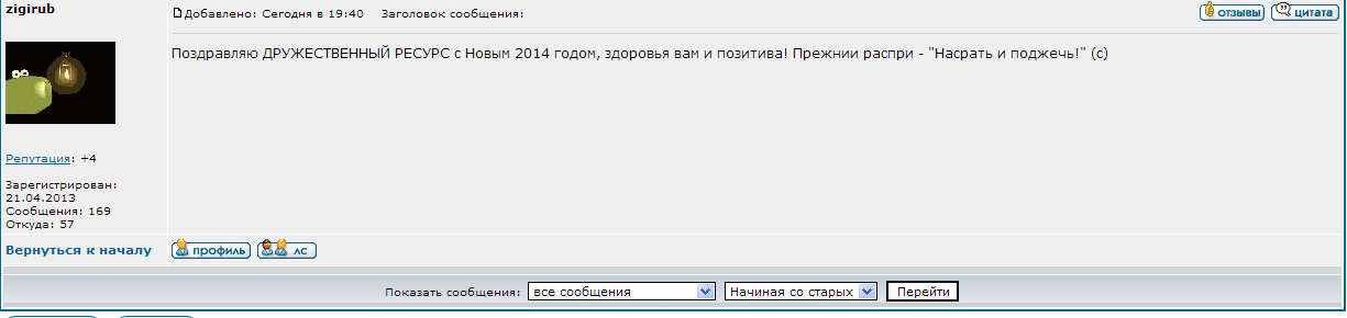 А что особенно радует - поздравил моей бессмертной фразой - насрать и поджечь! Уважуха! Приятно наблюдать крупицу здравомыслия где ее как бы по статусу не положено