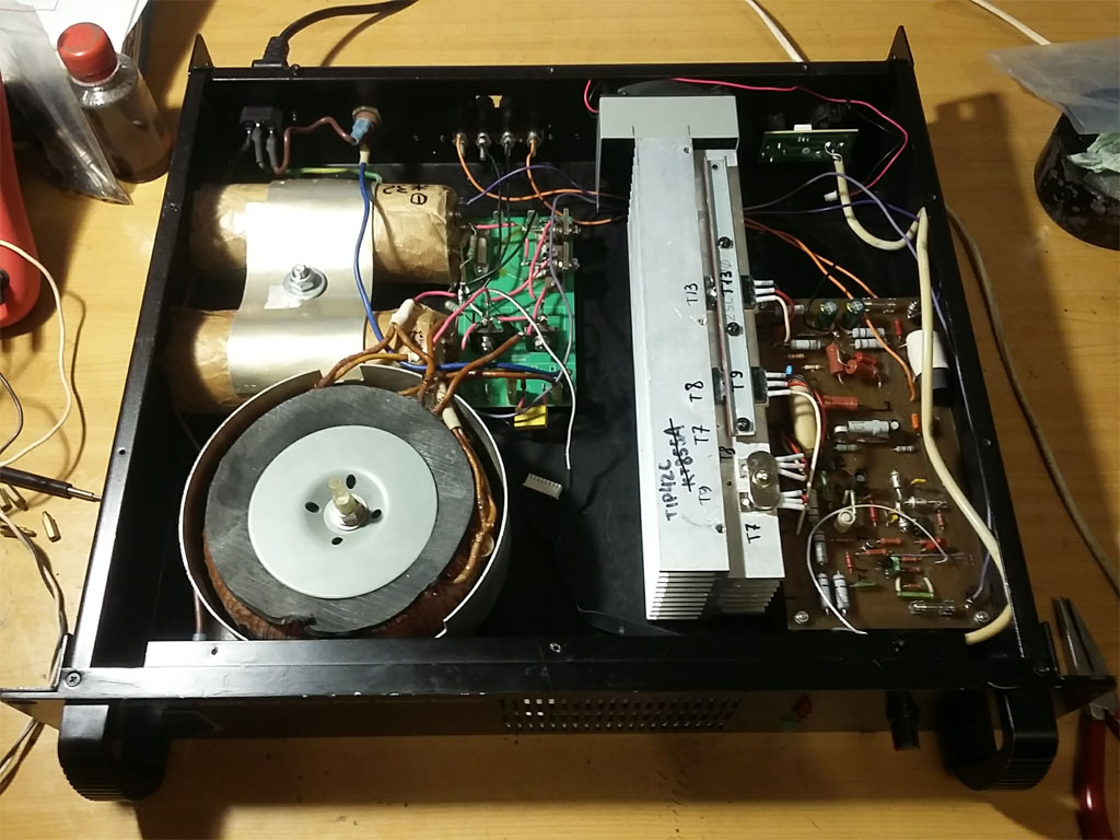 Результирующий макет даёт полста Ватт на один канал на нагрузку 9 Ом, но силовой трансформатор чисто для проверки - на хх питание примерно +\-38.