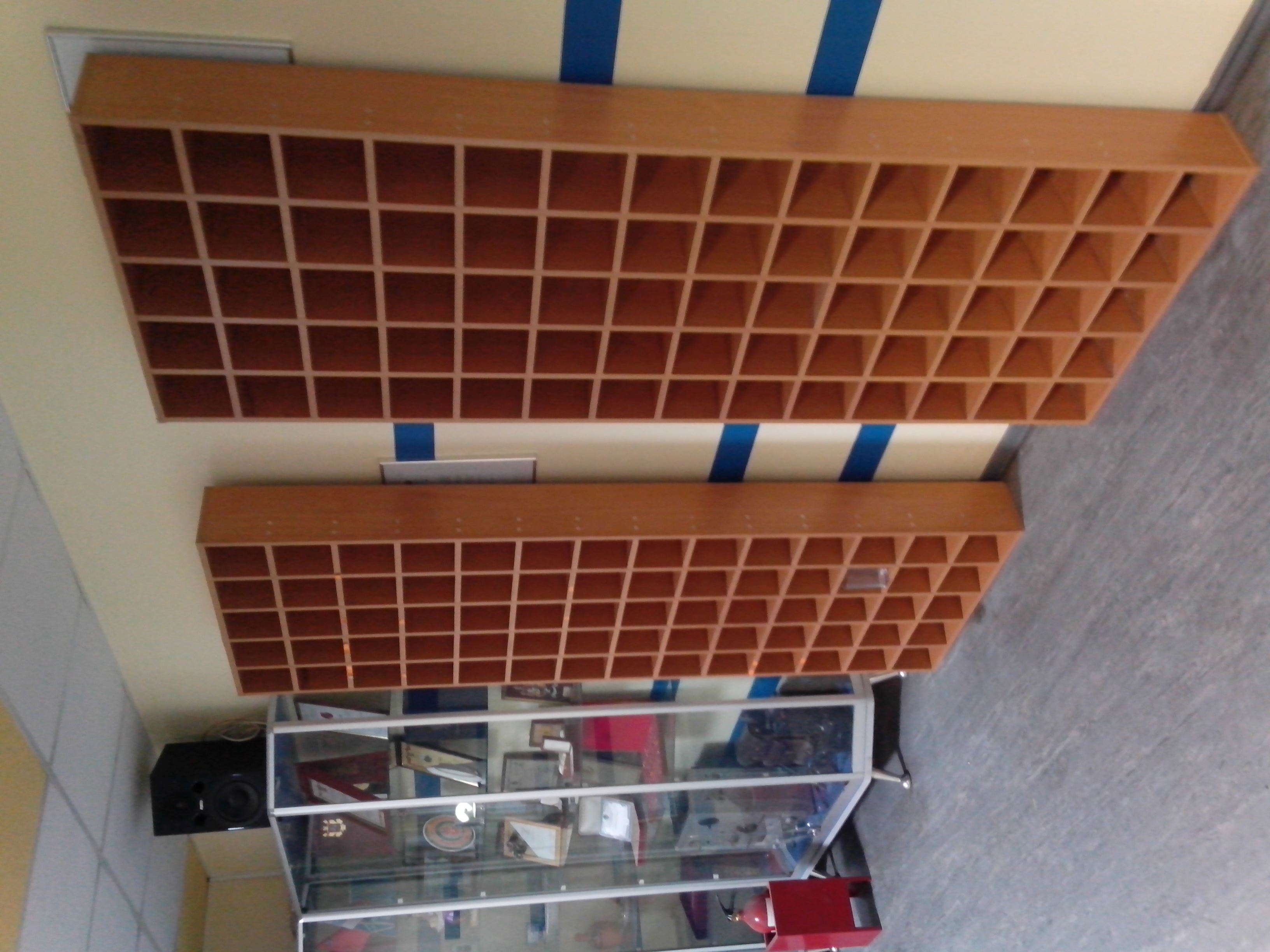Не смог вспомнить как называются такие ячеистые стеллажи специально разработанные для акустического оформления (какая-то фамилия инженера) - там ячейка меньше, сантиметров 10 кажется или меньше даже.