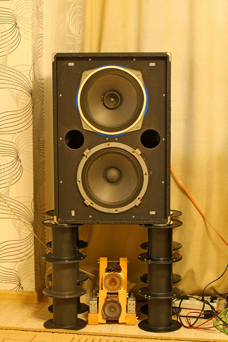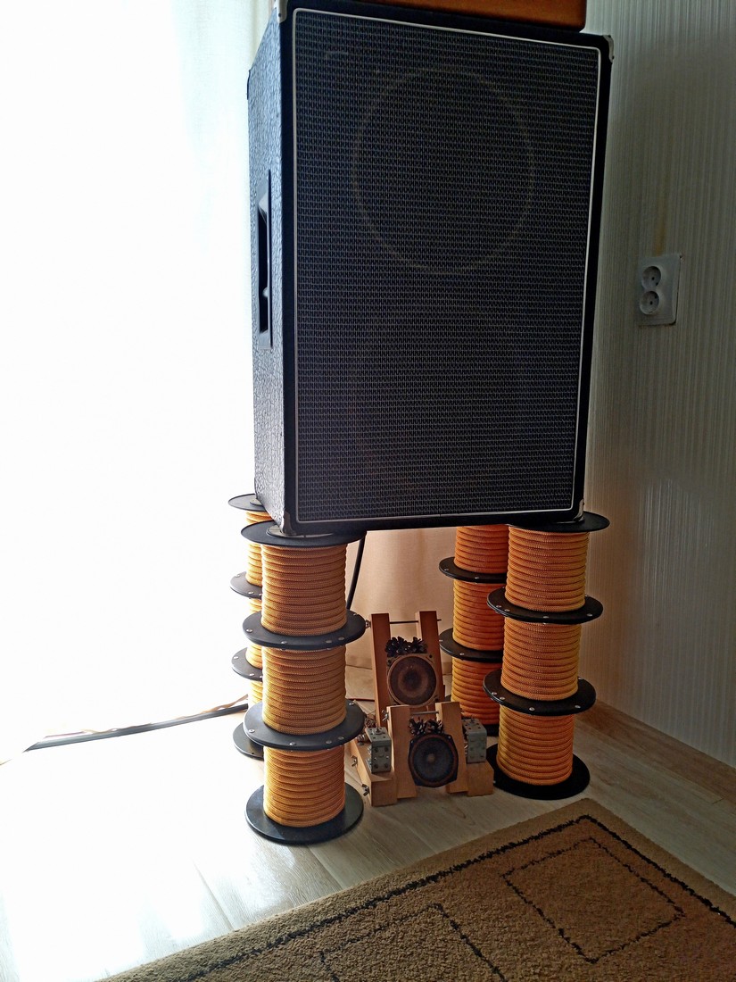 САМОДЕЛЬНЫЕ СТОЙКИ ПОД АКУСТИКУНачалось все с того, что как-то раз мой товарищ по увлечению Краев Олег, посоветовал мне попробовать поднять колонки на некоторую высоту, мол, подложи брус или что-то еще – должно получиться хорошо. Напомню, что у моих Вермон когда-то были штатные ножки. Они были удалены, а вместо них (для удобства перемещения) были установлены резиновые колесики. Открутил я, значит, эти колеса, и начал (в плане эксперимента) водружать акустику на всевозможные возвышения. Оптимальный звук получился на табуретах (это примерно 45 см от пола). Да так мне все это дело понравилось (не понимаю, почему я раньше этого не сделал), что идея запилить нормальные подставки родилась мгновенно. Негоже ведь колонкам торчать на табуретах)))