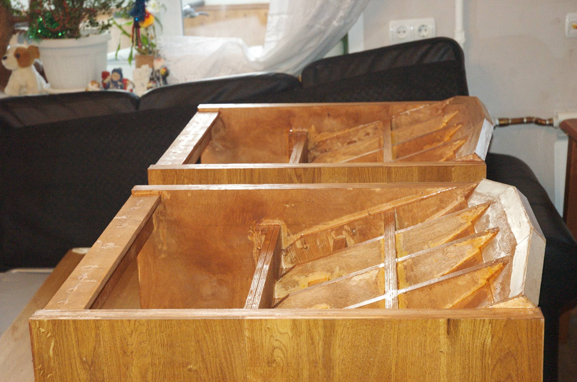 А ощущается работа АС - как будто сидишь перед сценой и смотришь на музыкантов снизу вверх. В принципе я не против, да так и задумывалось, однако варианты есть: можно положить низ на бок и оставшиеся полосы водрузить сверху. Так можно войти на второй этаж, разменяв высоту на ширину. Только почему-то мне кажется, что музыку лучше слушать под высоким потолком - что скажете? |