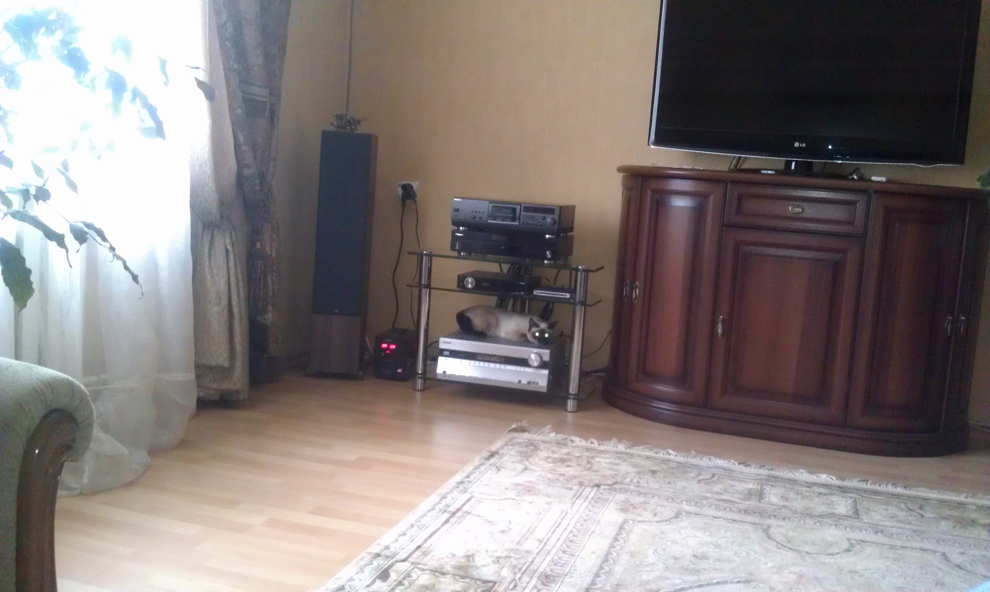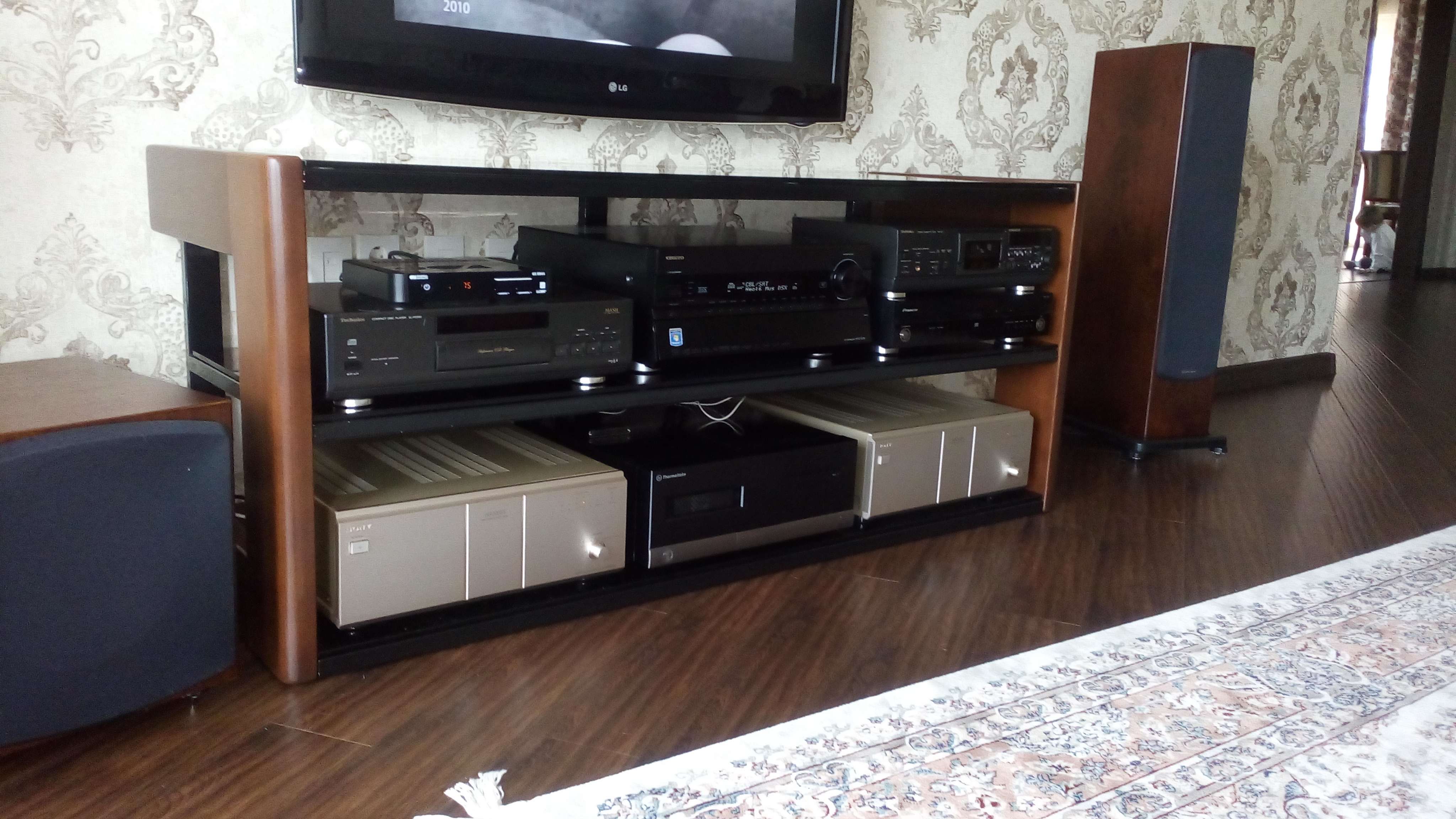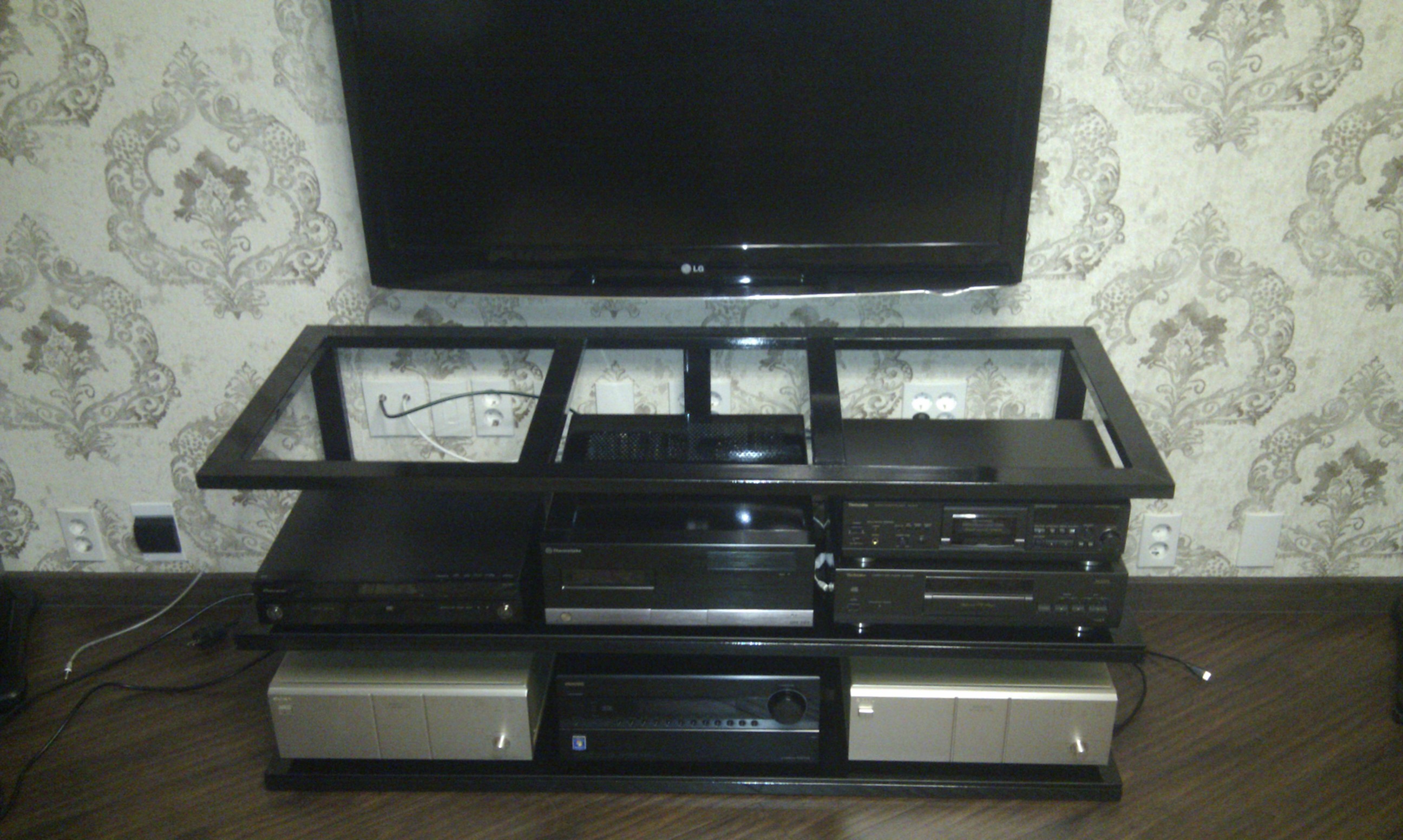 Добрый день. Предлагаю вашему вниманию свою систему. Стойку изготавливал сам под технику которую регулярно слушаю всей семьей, жене тоже очень нравиться что я слушаю. Прошу сильно не пинать.
